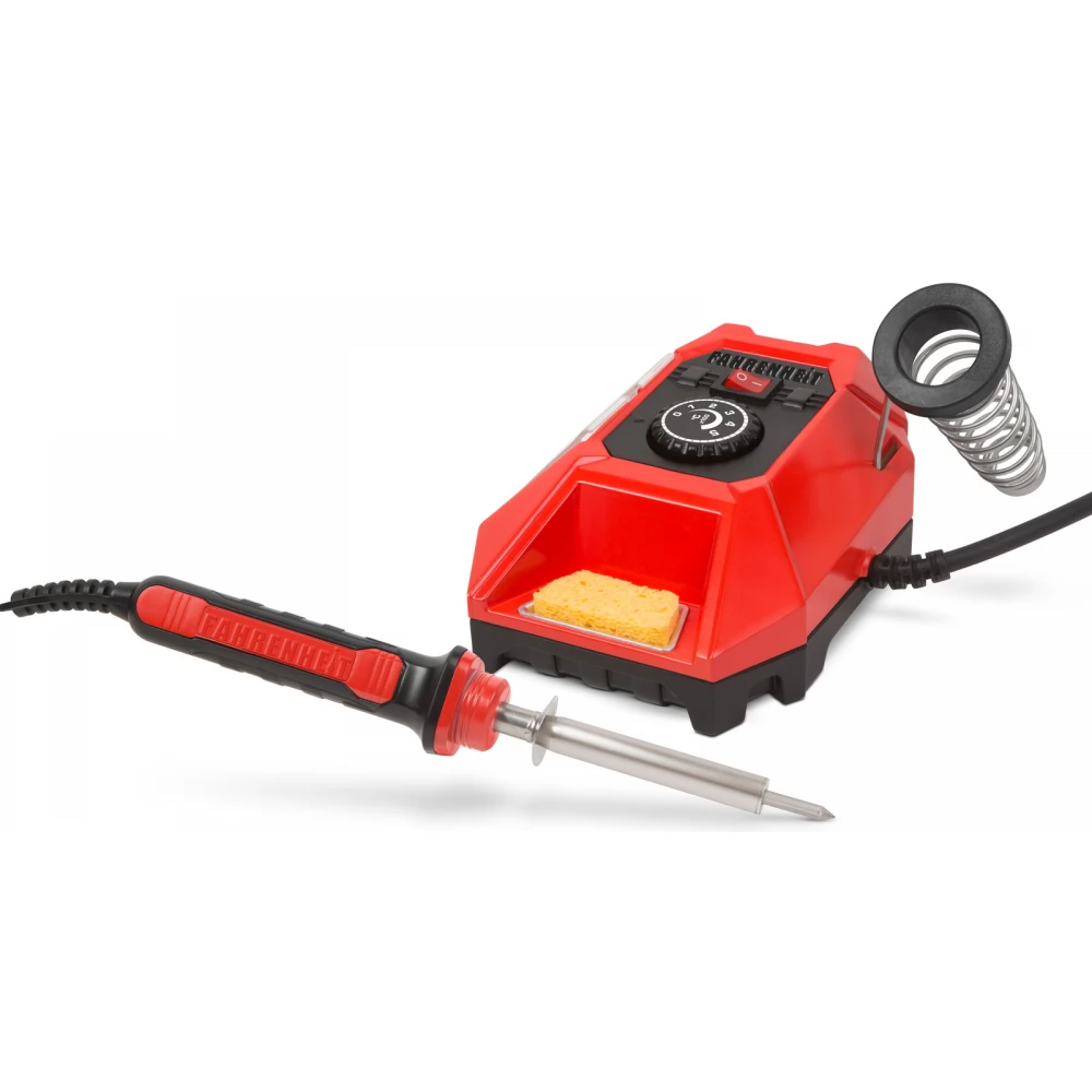 S najnovijom stanicom za lemljenje tvrtke Fahrenheit možete jednostavno i učinkovito lemiti elektroničke komponente. Zahvaljujući kompaktnoj veličini, ne zauzima puno mjesta na stolu, ali ima sve funkcije koje trebate. Držač poluge i dugački kabel poluge jamče udoban rad. A zahvaljujući limenom držaču ugrađenom u stanicu za lemljenje, potreban pomoćni materijal uvijek možete imati pri ruci. Temperatura potrebna za lemljenje može se precizno namjestiti rotirajućim prekidačem na vrhu instrumenta.