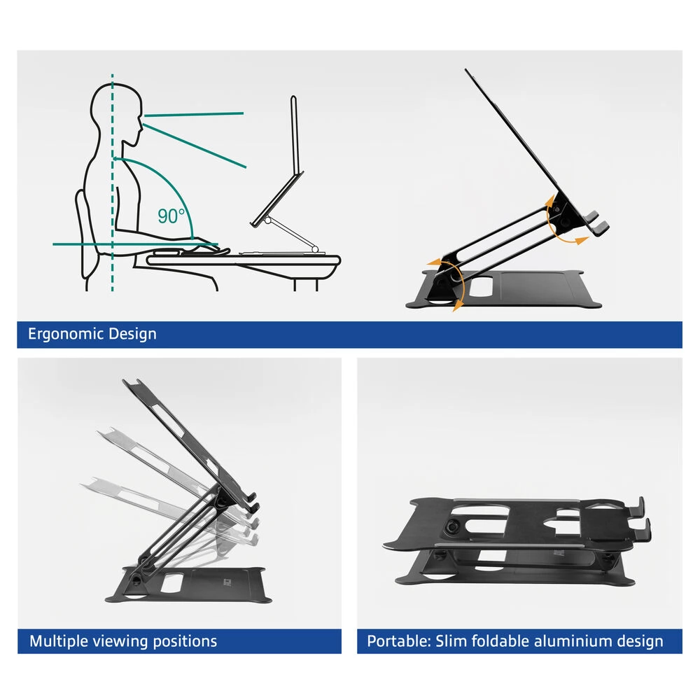 ACT CONNECTIVITY Foldable Laptop Stand. aluminium. with stepless height adjustment