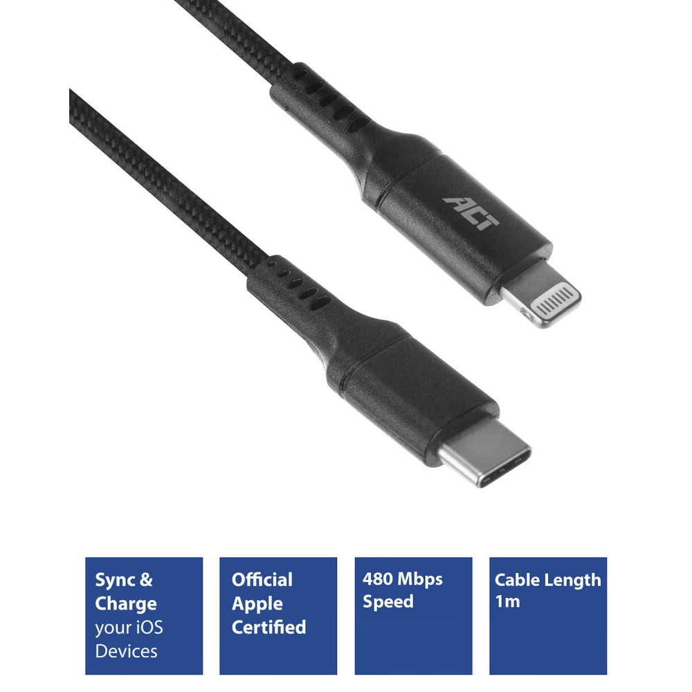 ACT CONNECTIVITY USB 2.0 Type C Lightning Punjač/podaci Crno 1m AC3095