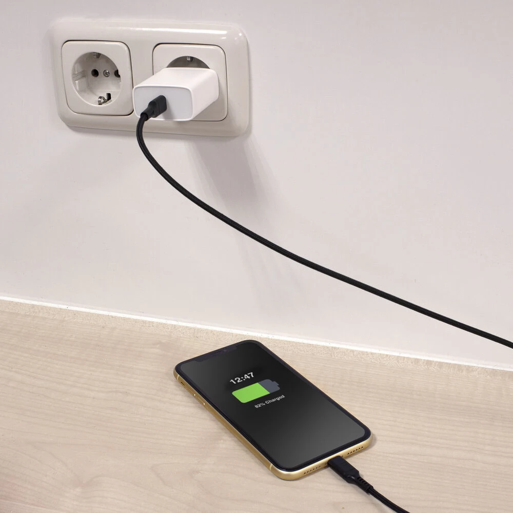 Crni, 1 m dugačak USB 2.0 Type C - Lightning kabel za punjenje/podatkovni kabel.