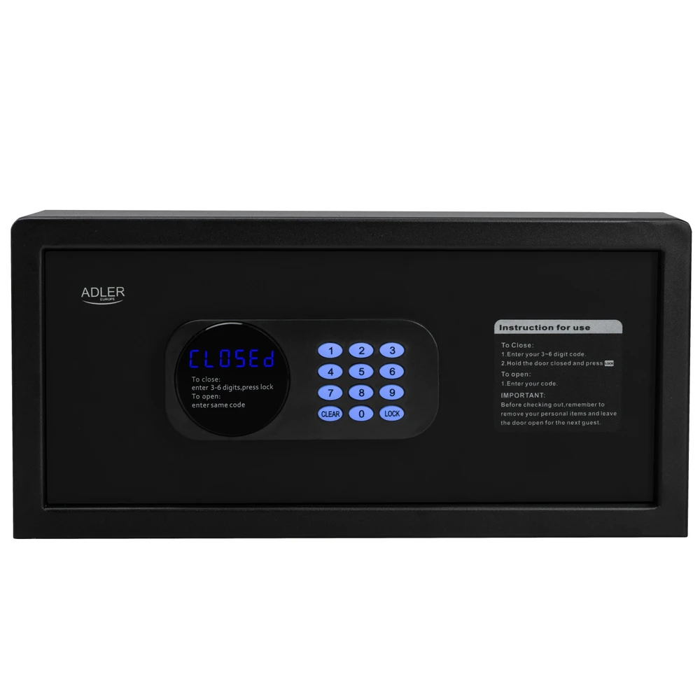 Osigurajte najvišu razinu zaštite za svoje dragocjenosti sa sefom Adler AD 1045 - sigurnim i modernim rješenjem za domove, hotele i urede. Sef izrađen od izdržljivog čelika, opremljen elektronskom bravom i motoriziranim sustavom, koji pruža pouzdanu zaštitu, udobnost i bezbrižnost.