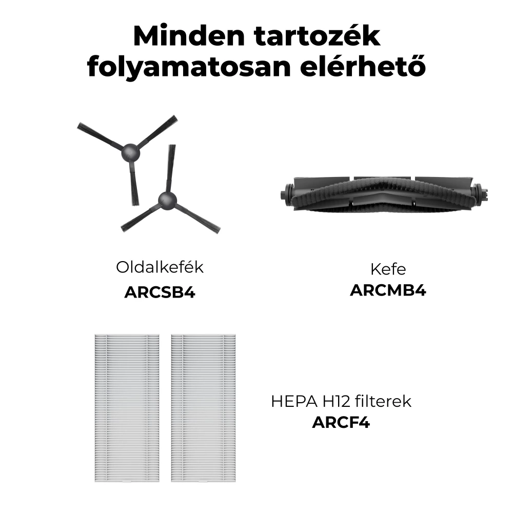 Bočne četke, glavna četkica, HEPA H12 filtri, mop za tkivo.