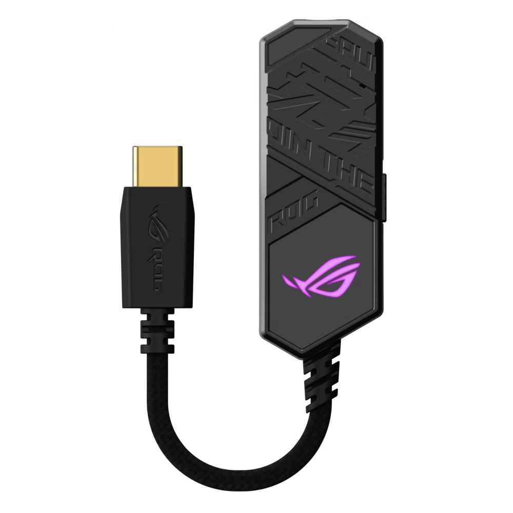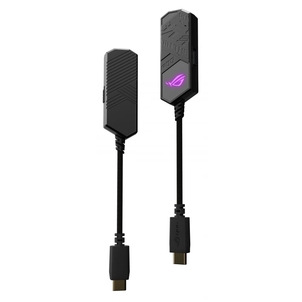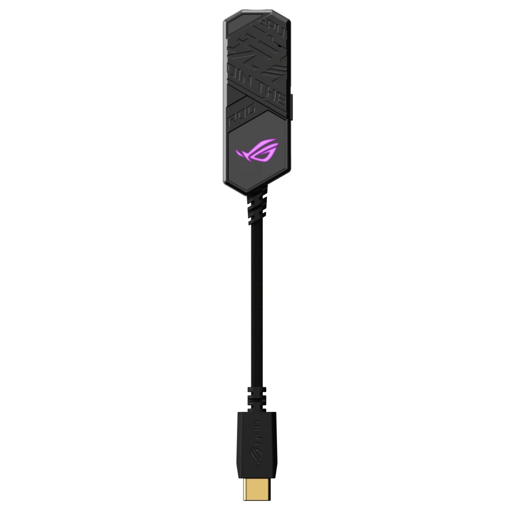 ROG Clavis USB-C – 3,5 mm digitalno-analogni pretvarač za igranje s AI mikrofonom za uklanjanje buke, MQA tehnologijom renderiranja, ESS 9281 QUAD DAC™ tehnologijom, pojačivačem zvuka i Aura Sync. ROG Clavis također je kompatibilan s osobnim računalima, mobilnim uređajima i prijenosnim računalima.