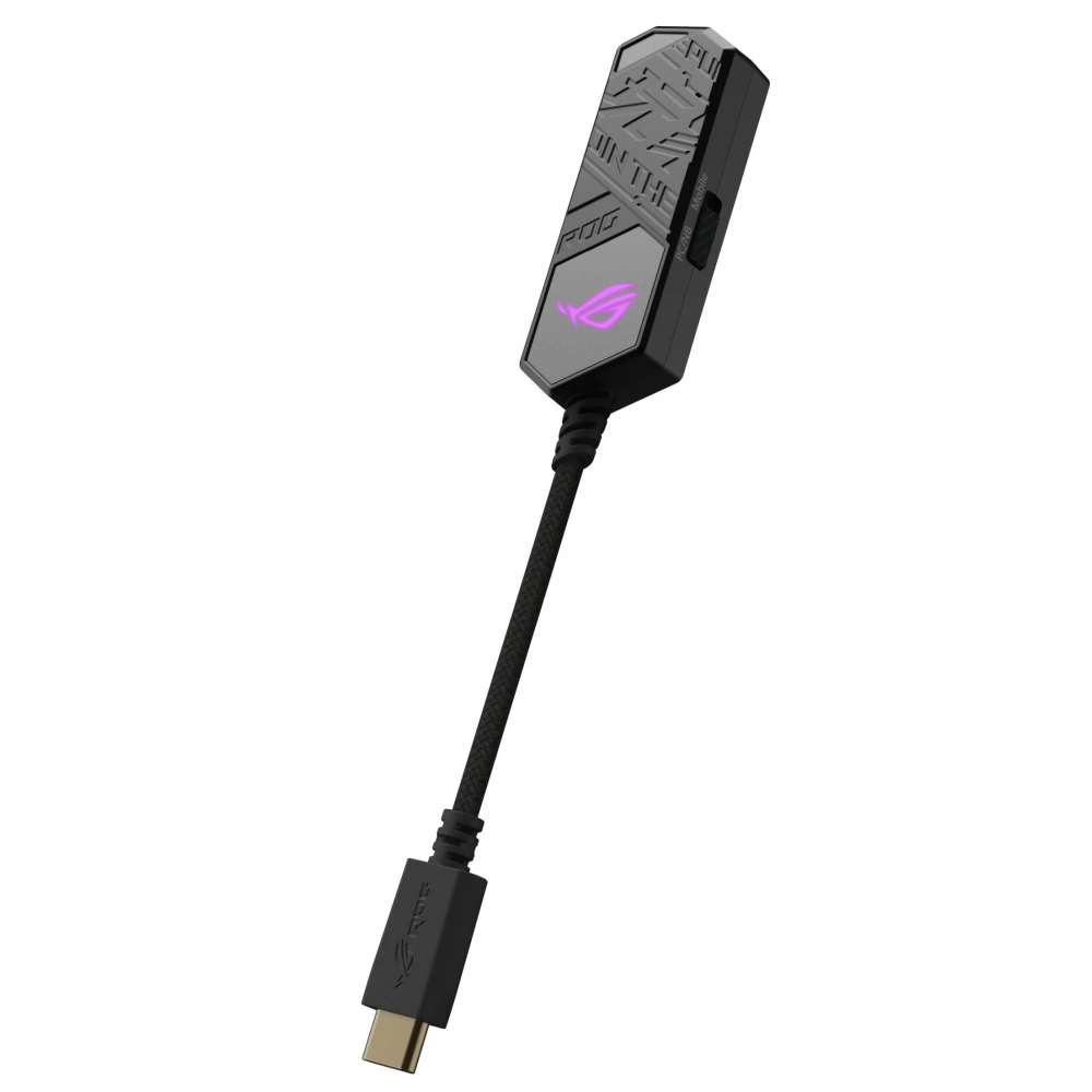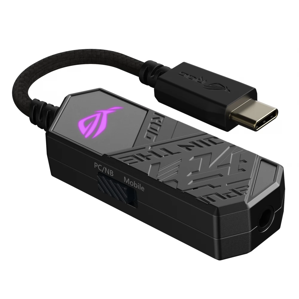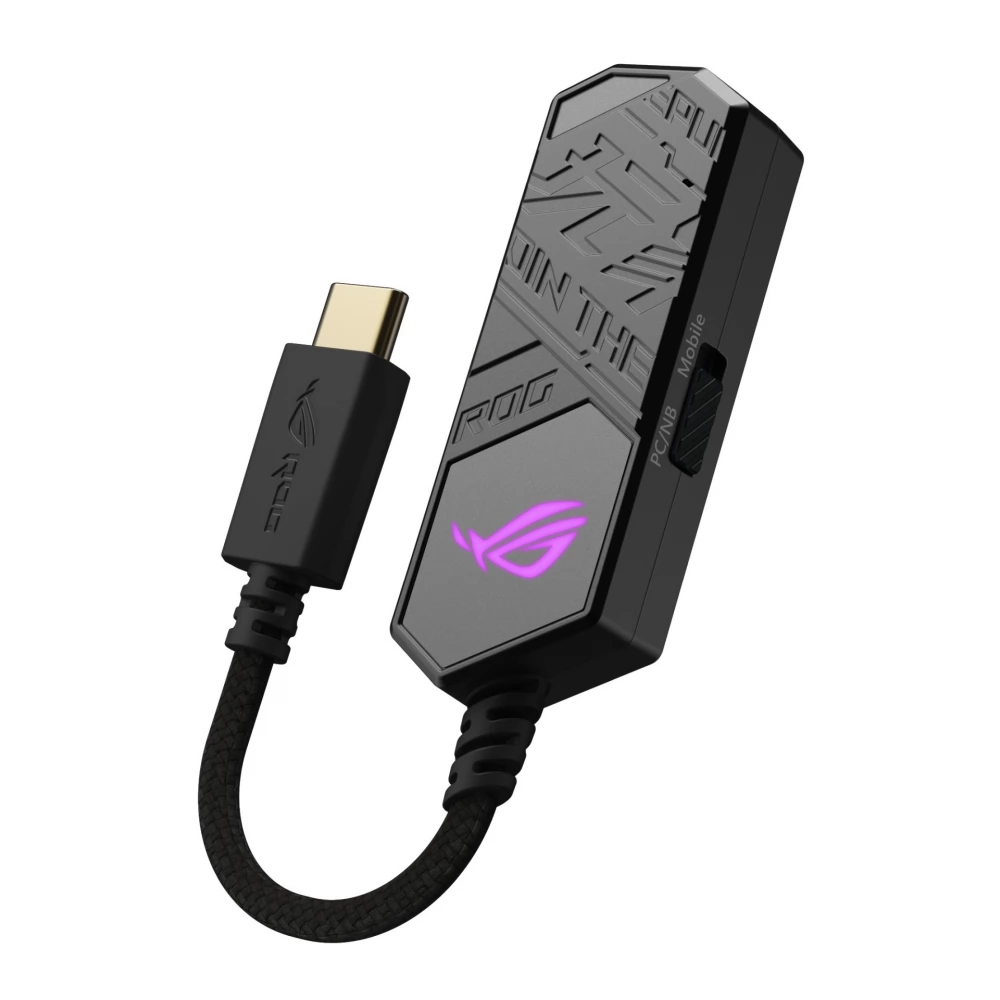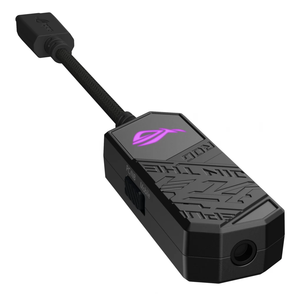 ROG Clavis USB-C – 3,5 mm digitalno-analogni pretvarač za igranje s AI mikrofonom za uklanjanje buke, MQA tehnologijom renderiranja, ESS 9281 QUAD DAC™ tehnologijom, pojačivačem zvuka i Aura Sync. ROG Clavis također je kompatibilan s osobnim računalima, mobilnim uređajima i prijenosnim računalima.
