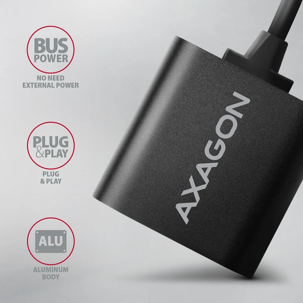 AXAGON ADA-12 vanjski USB audio adapter jednostavno i brzo nadopunjuje vaše računalo nedostajućim izlazom za slušalice ili ulazom za mikrofon. Također dobro služi kao zamjena za pokvarenu originalnu integriranu zvučnu karticu u prijenosnom računalu.