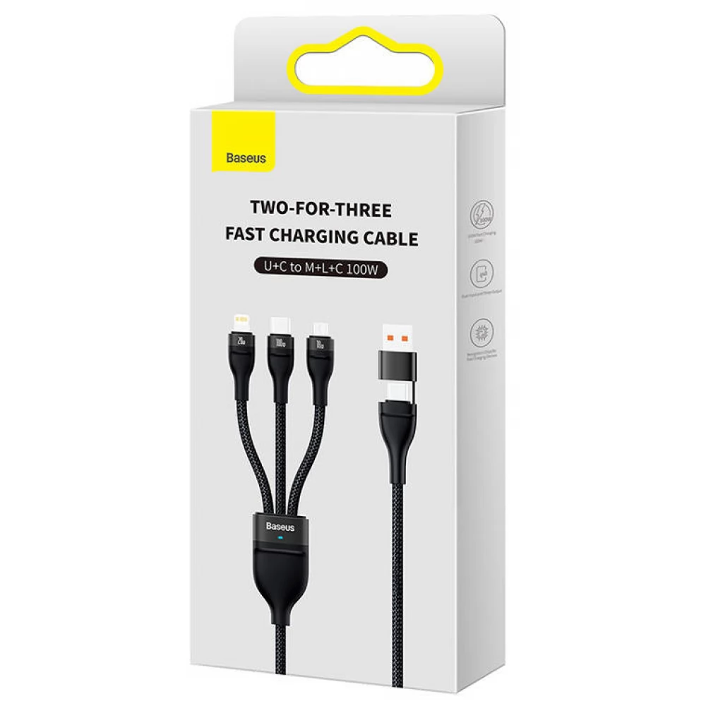 BASEUS USB Lightning + Micro USB + USB Type C transformator Crno 1.2m CASS030101