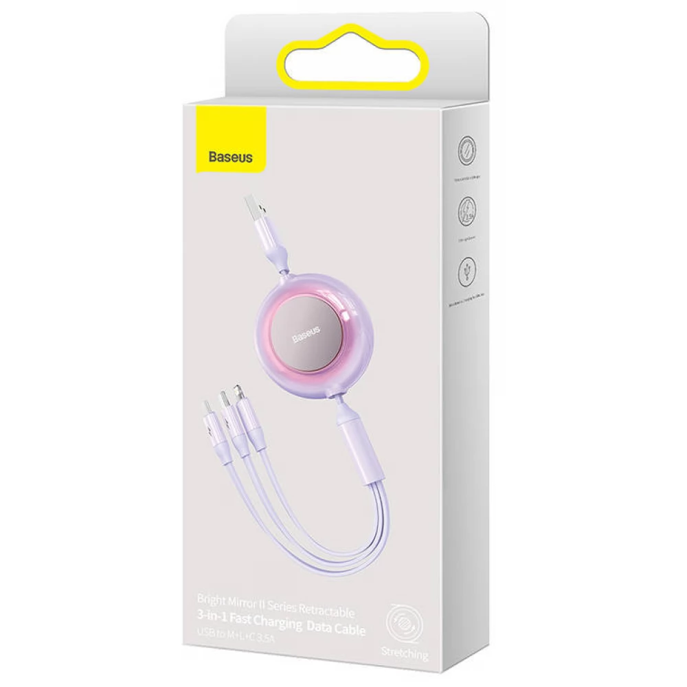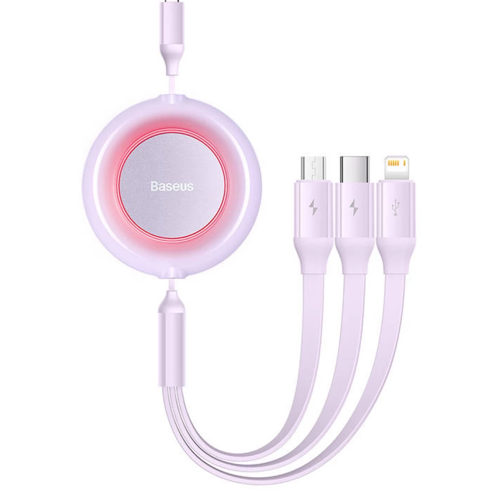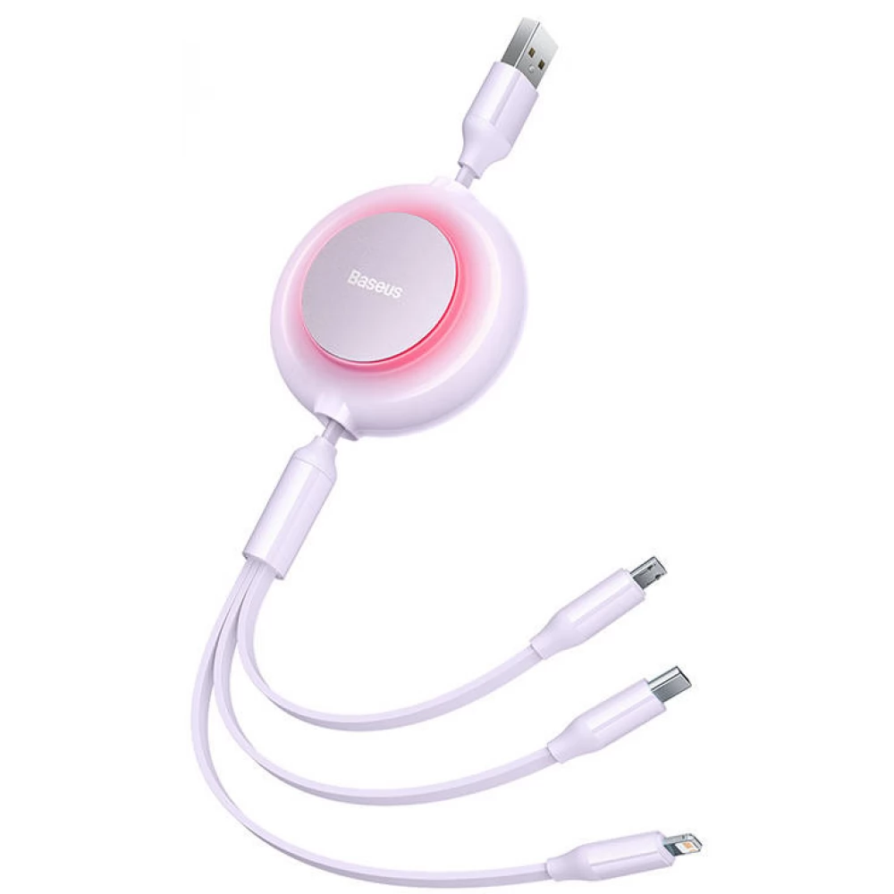 BASEUS USB Lightning + Micro USB + USB Type C transformator Lila 1.1m CAMJ010005