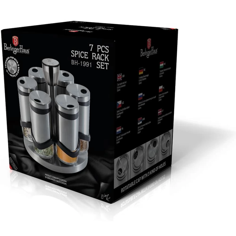 BERLINGER HAUS BH/1991 Black Silver Collection 7 delovi stalak za začine set