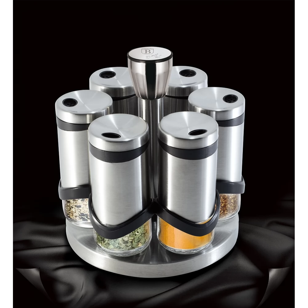 Savršeno organizirano skladištenje začina bitan je dio iskustva kuhinje s pet zvjezdica. Set držača začina od 7 dijelova izrađen je od nehrđajućeg čelika i pruža potpunu udobnost i eleganciju u vašoj kuhinji. Njegov čist, transparentan dizajn, atraktivno postolje koje štedi prostor i rotirajući držač začina savršena su kombinacija stila i funkcionalnosti. Upoznajte pobliže ovaj izniman set za pohranu začina!