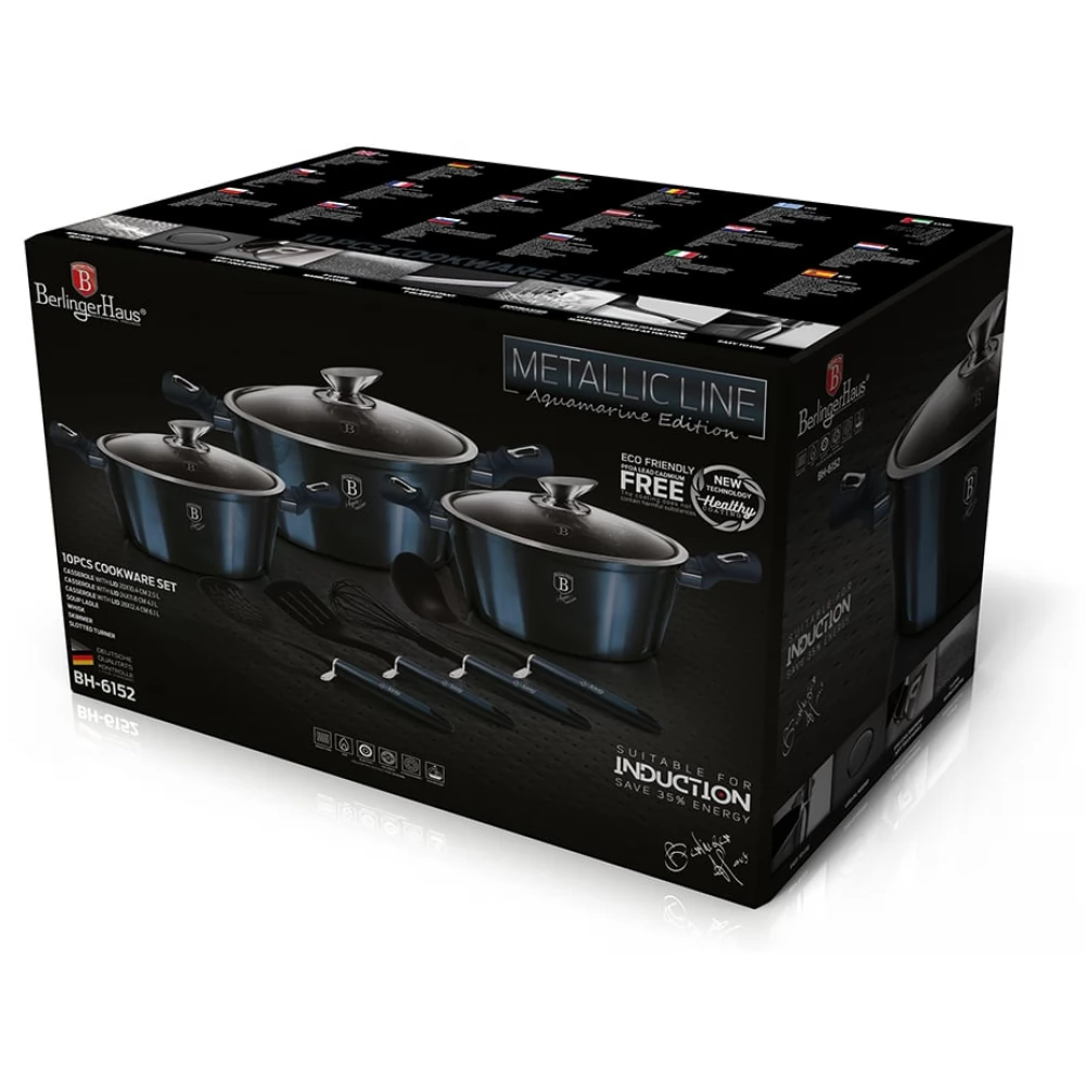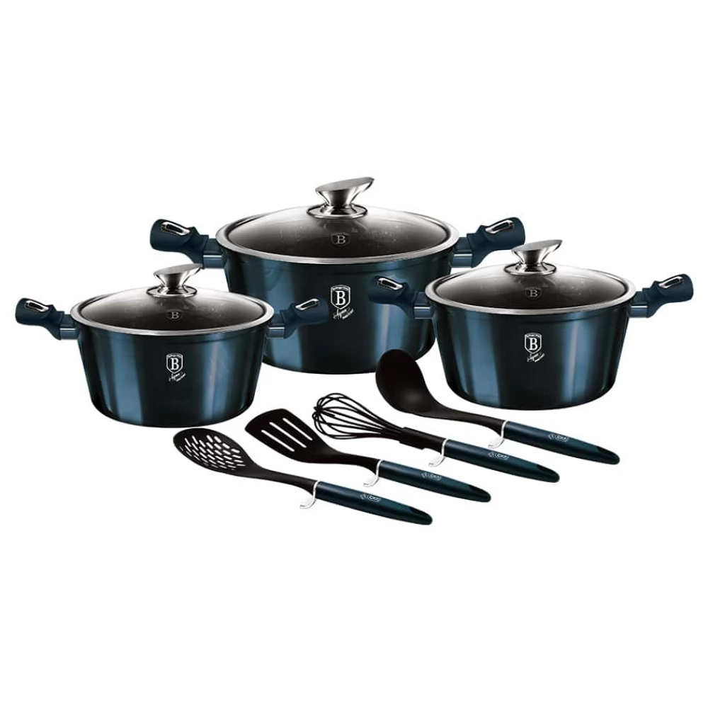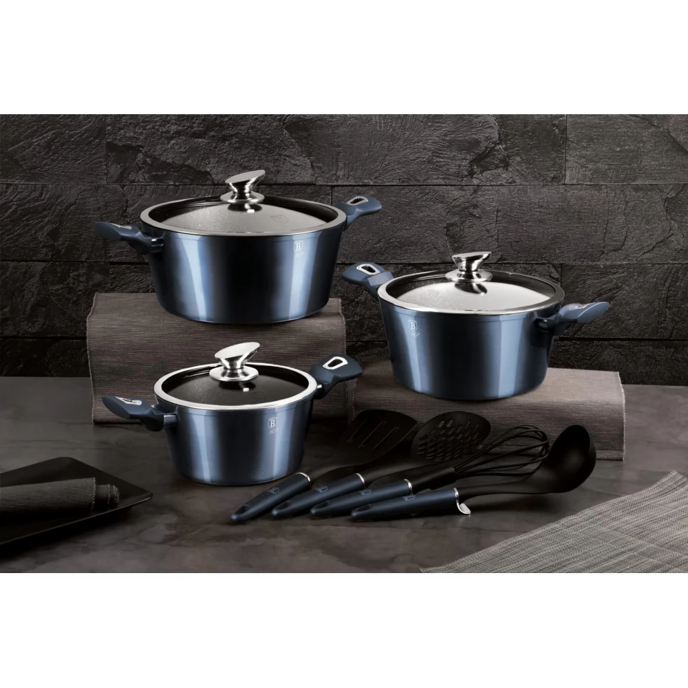 BerlingerHaus tave i lonci su gotovo bez iznimke izrađeni od 3-slojnog kovanog aluminija koji omogućuje visok stupanj provođenja topline. Osim toga, imaju 3-slojnu neprianjajuću mramornu prevlaku zahvaljujući kojoj se hrana ne lijepi i ne zagori za dno posude pa će se hrana ravnomjerno kuhati i ostati sočna čak i uz minimalan dodatak masnoće.