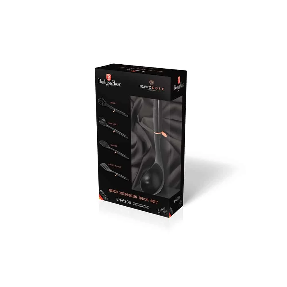 Kolekcija Black Rose elegantan je i funkcionalan dodatak svakoj kuhinji. Kuhinjski set alata od 4 dijela karakterizira moderan dizajn i ekološki prihvatljivi materijali koji doprinose praktičnosti i stilu.