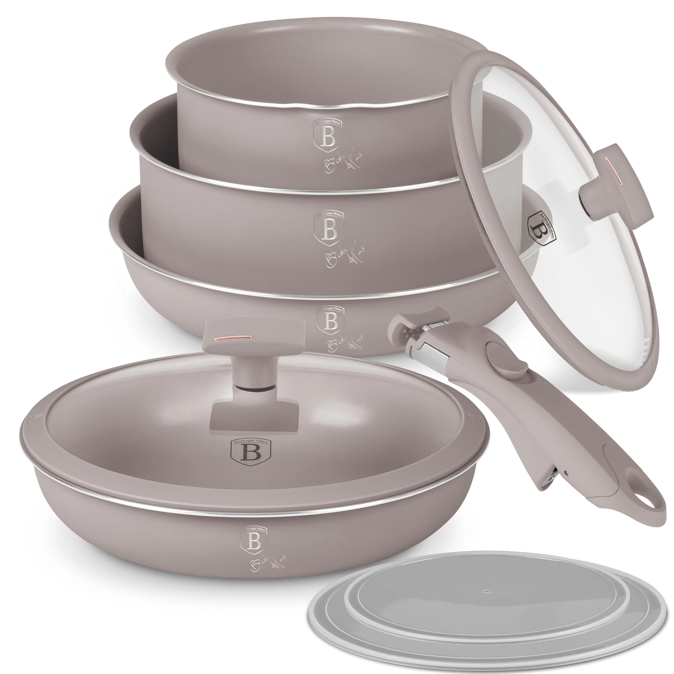 Kolekcija sa 9 -izlivom za kolekciju Taupe savršen je izbor za sve koji traže eleganciju i funkcionalnost u kuhinjskom priboru. Ne samo da ovaj komplet prenosi iskustvo kuhanja na novu razinu, već ubacuje i izgled vaše kuhinje. Svaki komad kompleta izrađen je od aluminija, Matt Taupe, koji predstavlja čist, minimalistički stil.