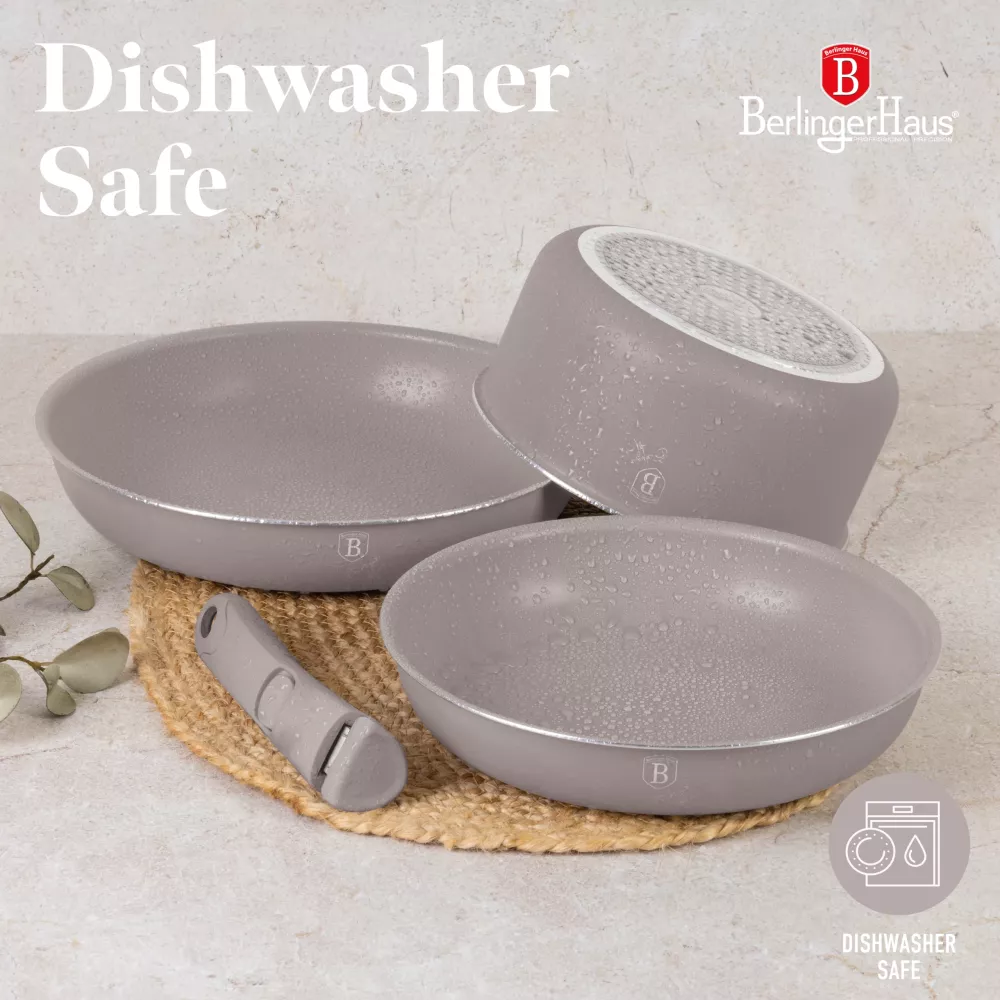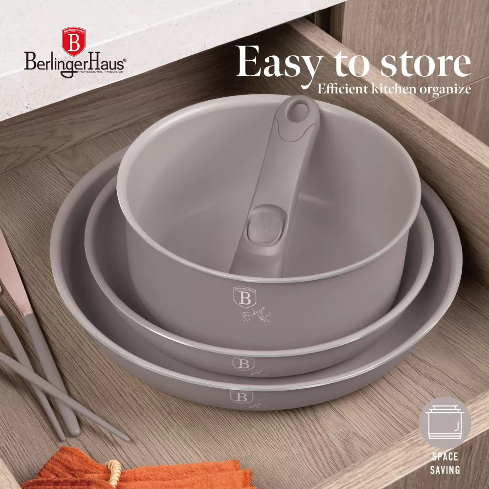 Turbo indukcijski potplat štedi 35% energije, štedeći ne samo vaš novčanik, već i okoliš. Zbog mat površine i čistog dizajna, svaki komad kompleta može se ponosno izložiti na kuhinjskom pultu, nema potrebe da ih sakrivate duboko u ladicu. Odaberite ovaj set i uživajte u prednostima stilskih i praktičnih kuhinjskih pribora svaki dan!