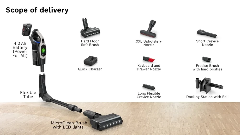 Jedinstvena MicroClean tehnologija redefinira usisavanje. MicroClean mlaznica osigurava Boschevo najbolje sakupljanje prašine i uklanja čak i nevidljivu prašinu. MicroClean senzor također otkriva mikroskopske čestice koje su nevidljive ljudskom oku. Kada MicroClean prsten zasvijetli plavo, možete biti sigurni da je vaš pod zaista čist.