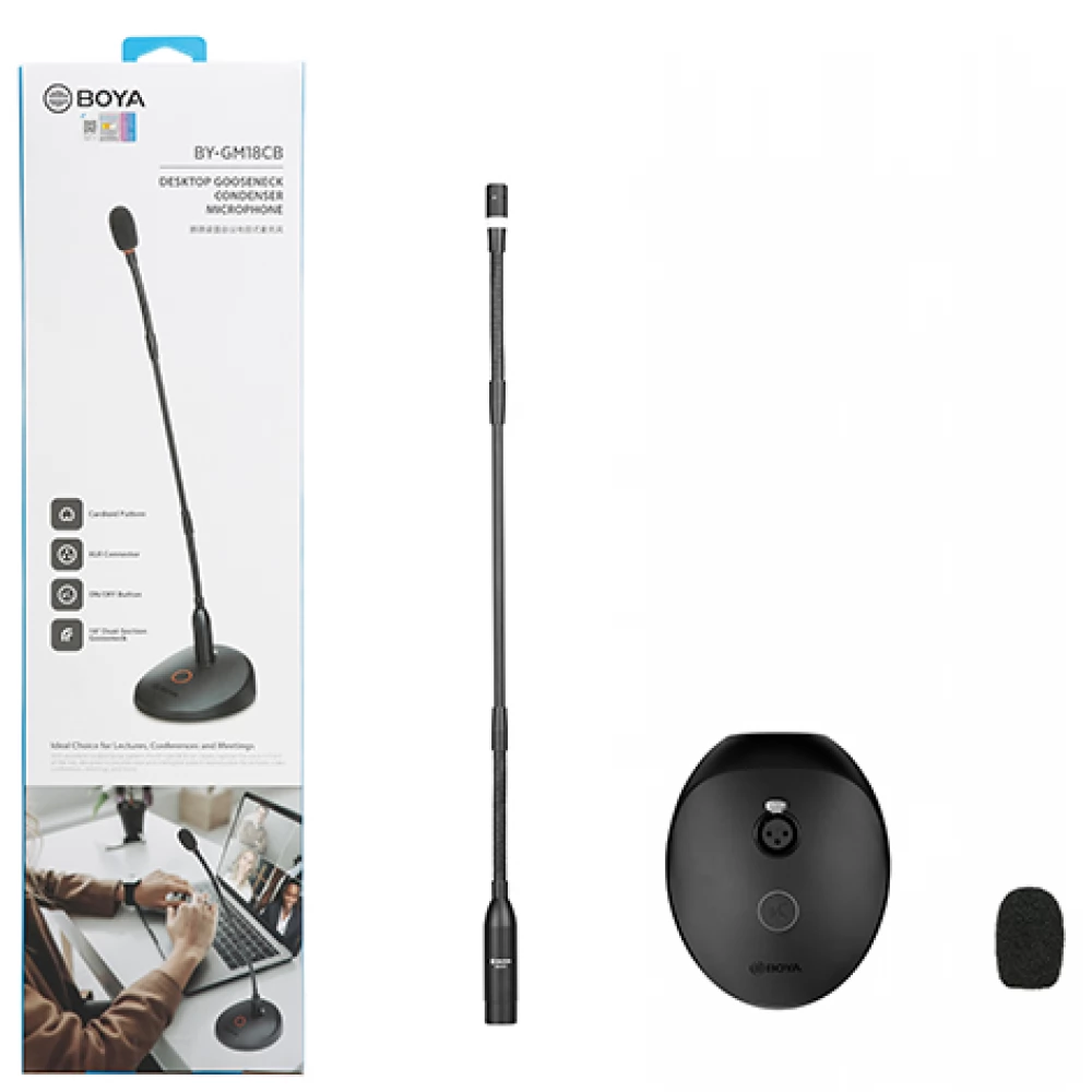 BOYA BY-GM18CB je kardio-kondenzatorski stolni mikrofon dizajniran za reprodukciju jasnog i razumljivog govora tijekom predavanja, videokonferencija i sastanaka. Vrat mikrofona omogućuje podešavanje mikrofona na željenu razinu.