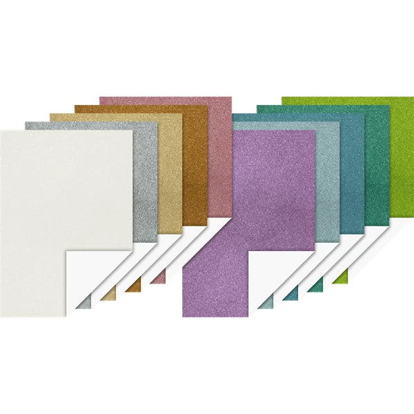 Set sadrži 10 komada svjetlucavog kartona 200 g/m2. Jedna strana ima prelijevajuću se svjetlucavu površinu, stražnja strana je bijela. Pakiranje sadrži 10 boja: pijesak, limun žuta, narančasta, crvena,...