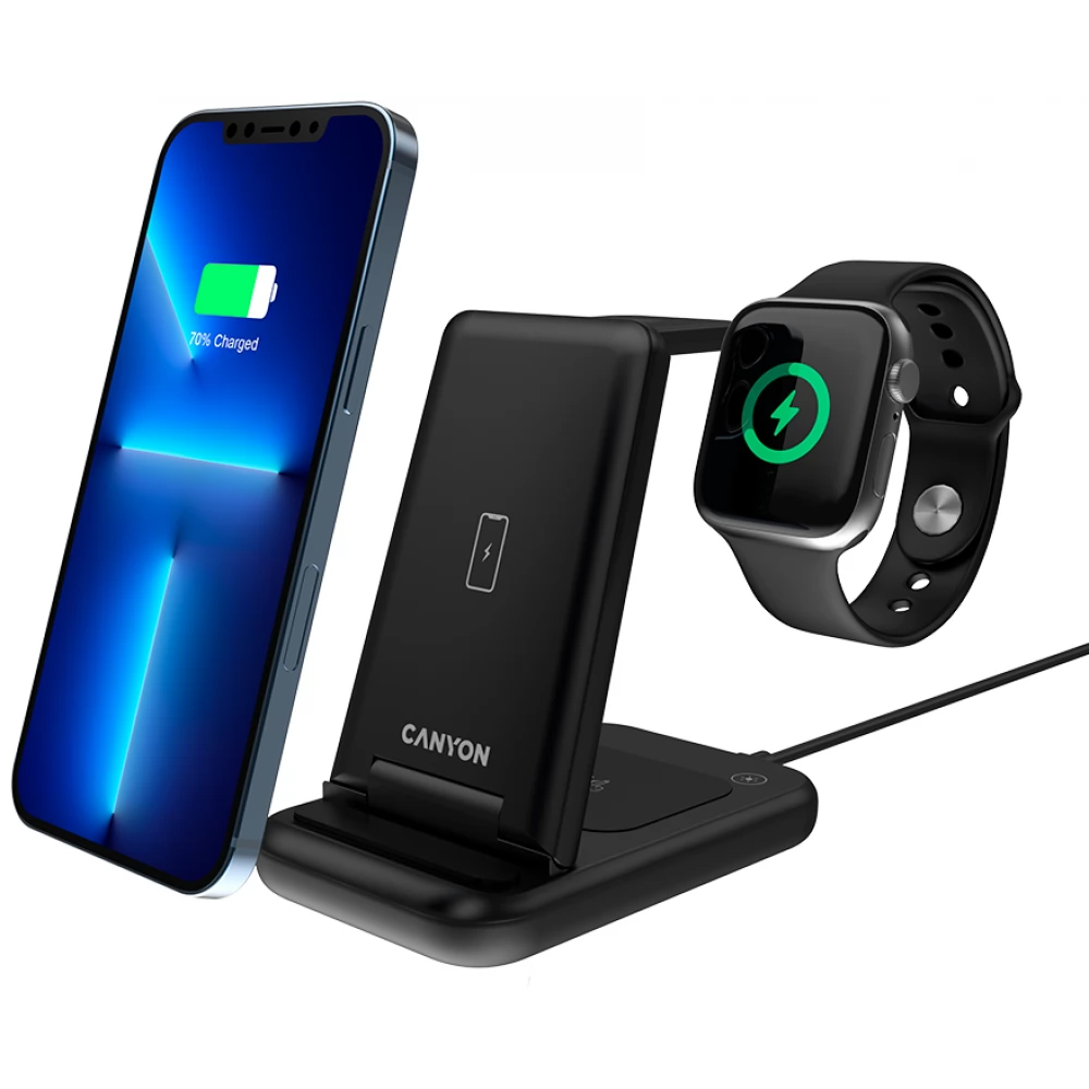 Canyon WS-304 stanica za punjenje oslobađa vas kaosa kablova za punjenje. Radi s većinom pametnih telefona i svim uređajima koji podržavaju Qi, uključujući iPhone, Apple Watch i AirPods.