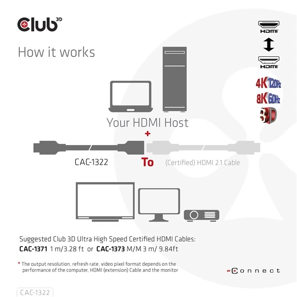 Ovaj klub 3D CAC-1322 kabel u potpunosti podržava sav HDMI ™ 2.1. Idealno za najbolje dostupno HDMI ™ 2.1 iskustvo.
