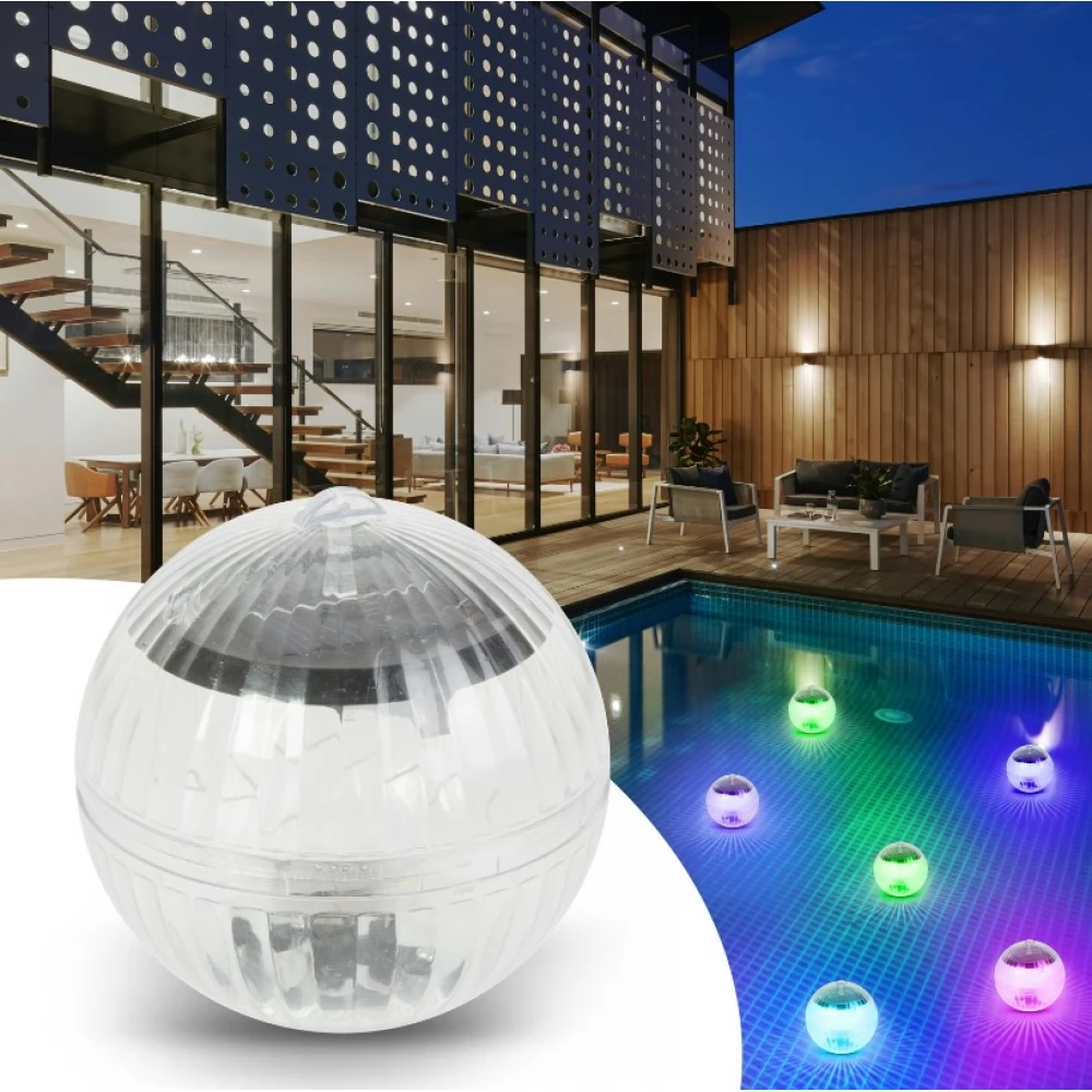 Kugla koja pluta na vrhu vode puni se tijekom dana uz pomoć sunčeve energije, a zahvaljujući ugrađenoj bateriji noću obasjava vodenu površinu čarobnim, šarenim svjetlom. Svjetlosni senzor automatski uključuje i isključuje uređaj ovisno o promjeni svjetlosnih uvjeta.