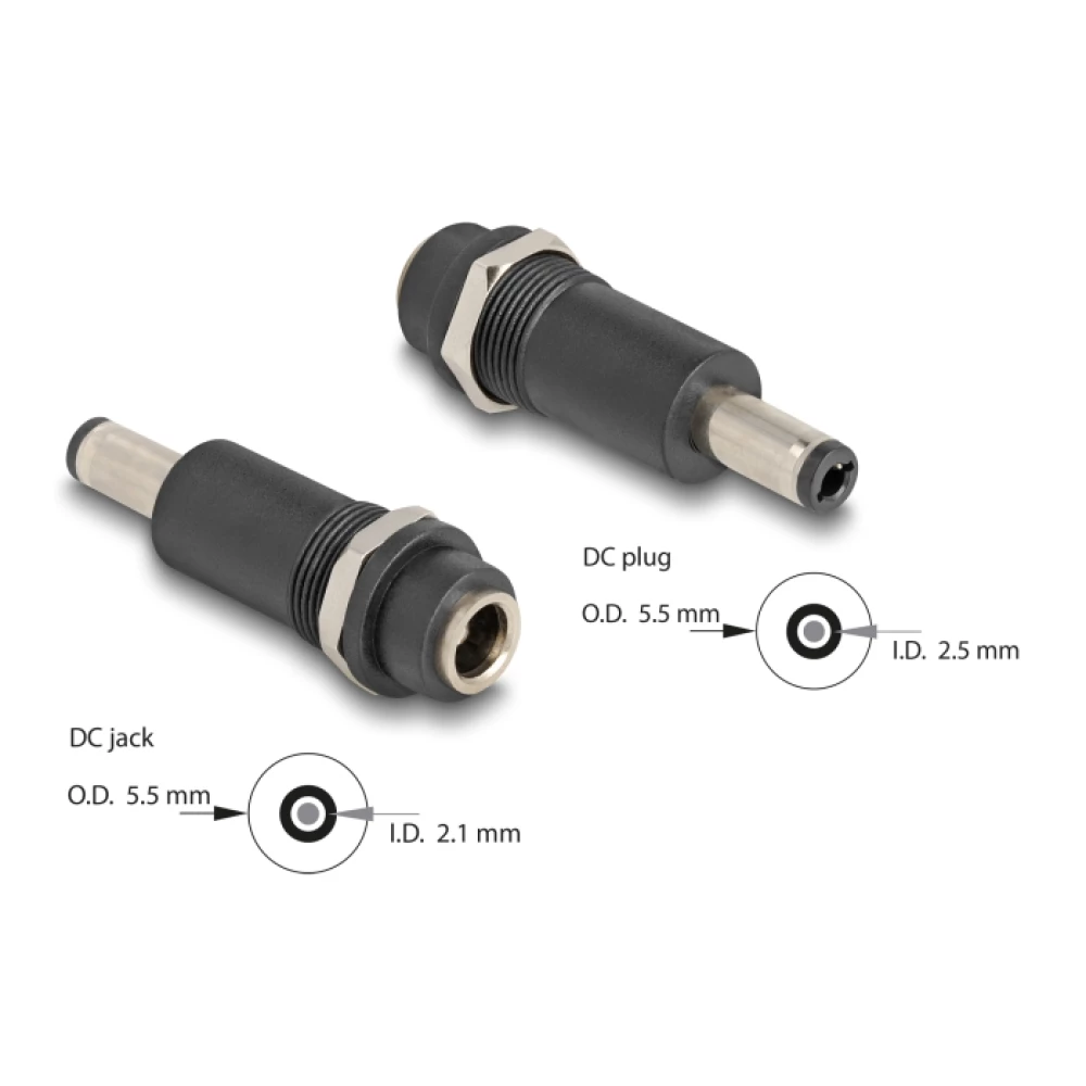 DELOCK Adapter. DC 5.5 x 2.1 mm-csatlakozóhüvely. DC 5.5 x 2.5 mm veličina apa