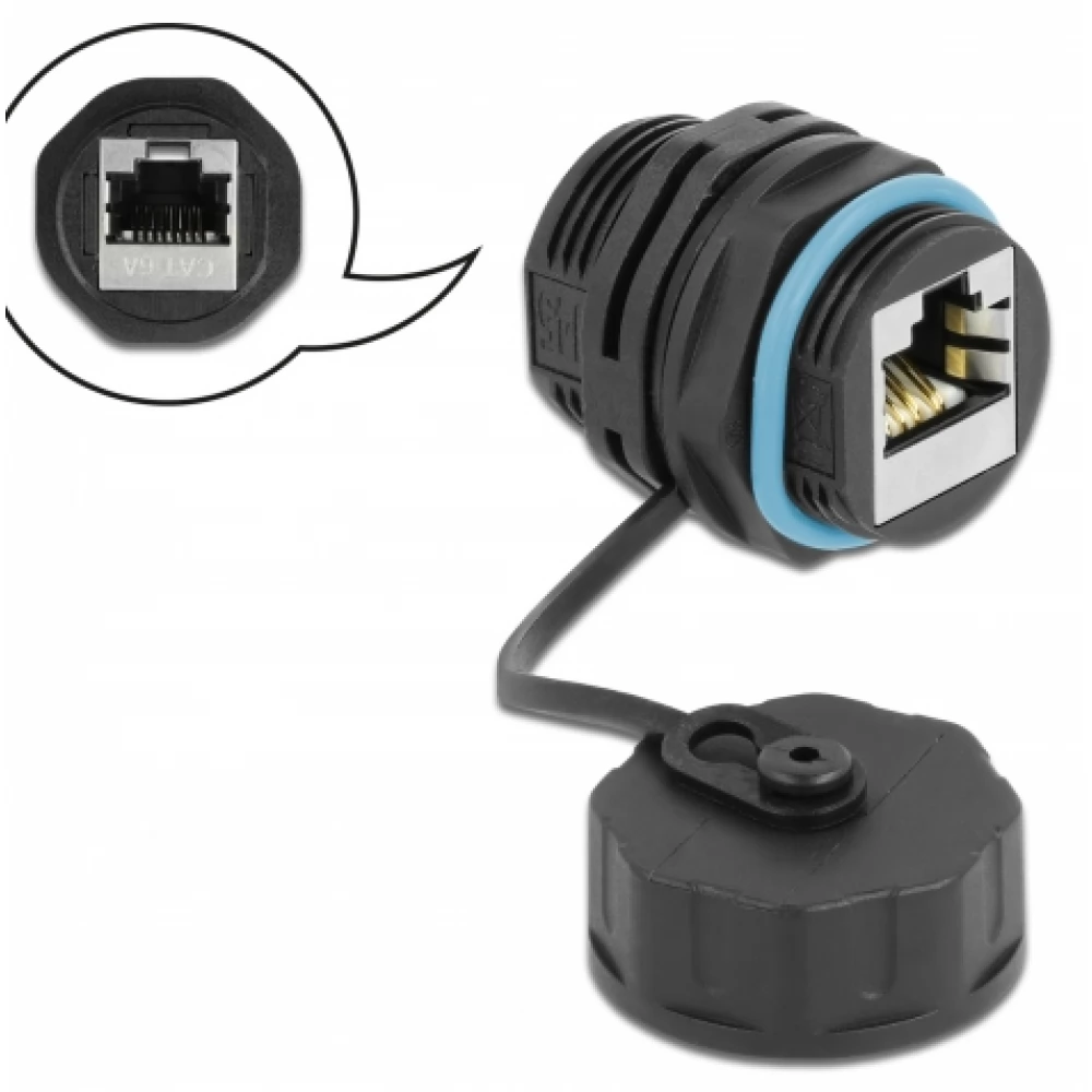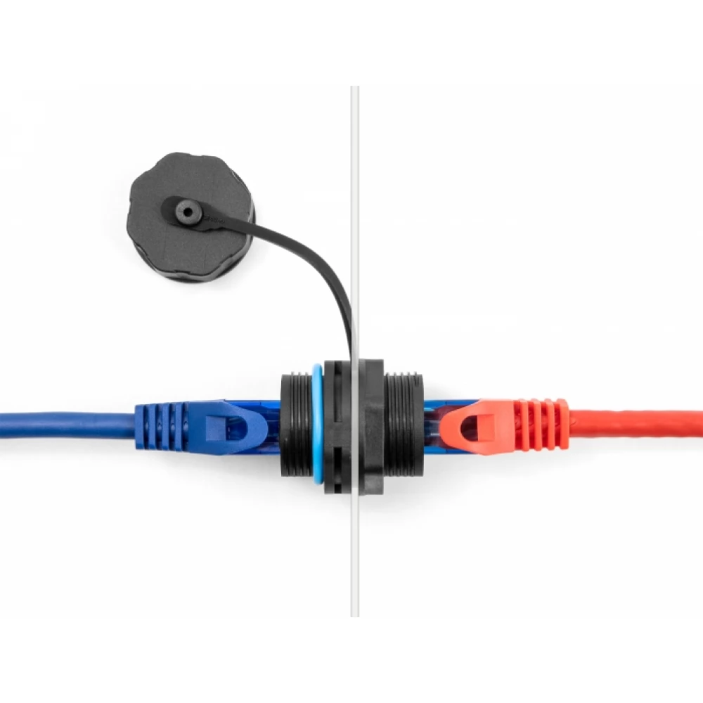 S jedne strane ove RJ45 spojnice nalazi se vodootporni kabelski ulaz koji osigurava siguran spoj pomoću silikonskog steznog prstena, a s druge strane se može zatvoriti zaštitnim čepom.
