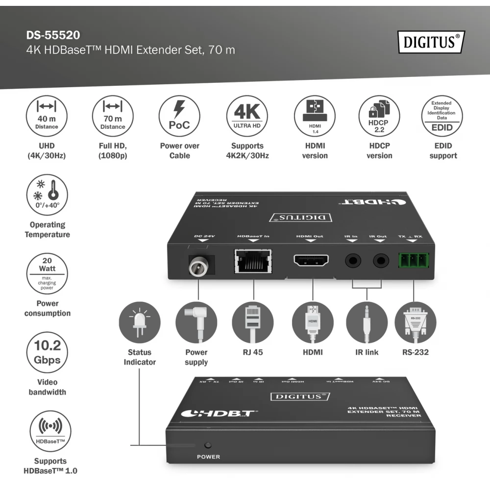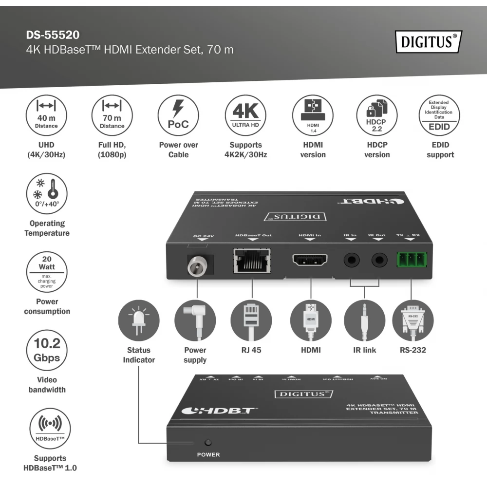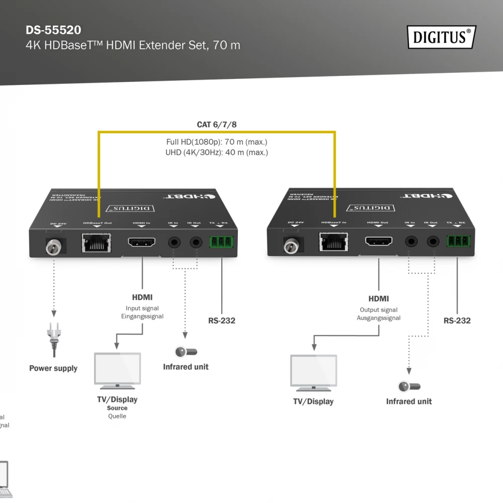 DIGITUS DS-55520 4K HDBaseT HDMI Extender Set 70m