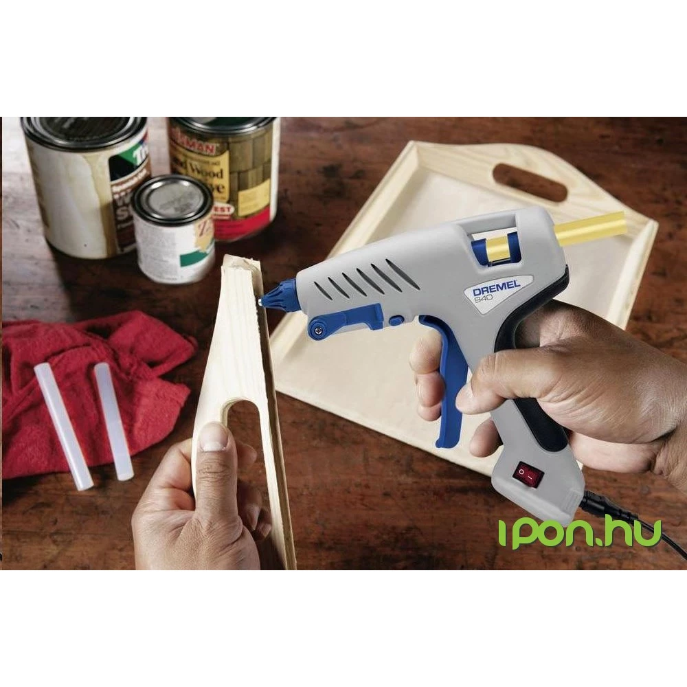 Dremel 940 je visokotemperaturni (195 °C) pištolj za ljepilo za kontrolu kapanja s preciznim vrhom. Sa svojim uklonjivim kabelom, 940 se može koristiti bilo gdje bez struje do 5 minuta. Zahvaljujući izvrsnim značajkama udobnosti (T-ručka, stabilna baza, sklopivi nosač) i zamjenjivom vrhu, idealan je za lagane DIY zadatke po kući, kao što su popravak namještaja, lijepljenje drva i keramike.