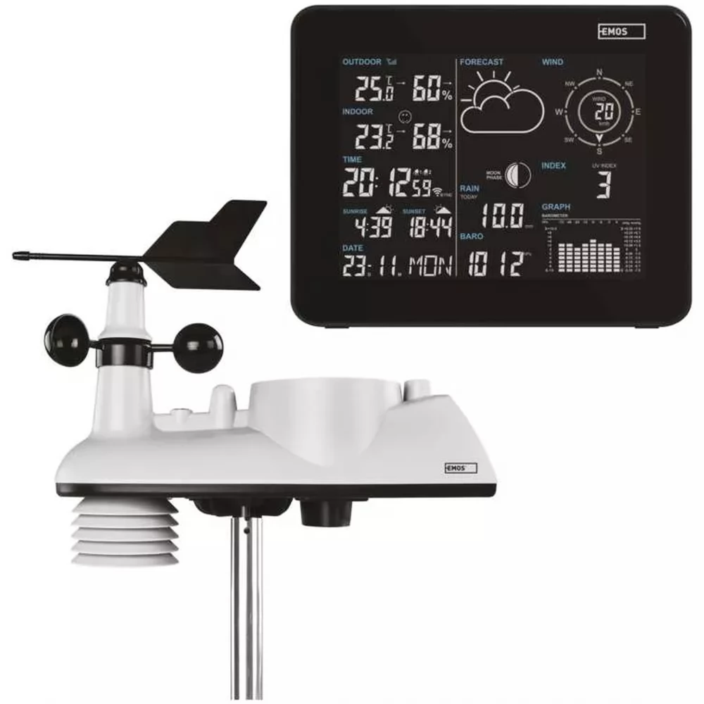 Što ću obući? Hoće li mi trebati kišobran? Ili bolje rečeno sunčane naočale? Ako ste jedan od onih koji voli držati stvari pod kontrolom, pametna bežična meteorološka stanica EMOS definitivno zaslužuje vašu pažnju. Najnaprednija meteorološka stanica namijenjena pravim sladokuscima, čija je velika prednost to što se njome upravlja putem inteligentne aplikacije, a svojim lijepim crnim dizajnom privlači poglede na prvi pogled. Zapravo, kad vidite što može! Obrađuje sve osnovne podatke poput mjerenja temperature, vlažnosti i tlaka. Ali druge značajke ove meteorološke stanice zaslužuju detaljniji pregled!
