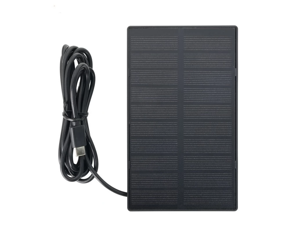 Paket sadrži solarnu ploču koja se može postaviti neovisno o kameri zahvaljujući kabelu od 3 metra. To vam omogućuje instaliranje na mjestima na kojima je sunčeva svjetlost slaba. Ploča se koristi za kontinuirano punjenje integrirane baterije i produžuje vrijeme rada bez potrebe za ručnim punjenjem ili zamjenom baterije. Kamera na taj način može dugo raditi uz minimalno održavanje.