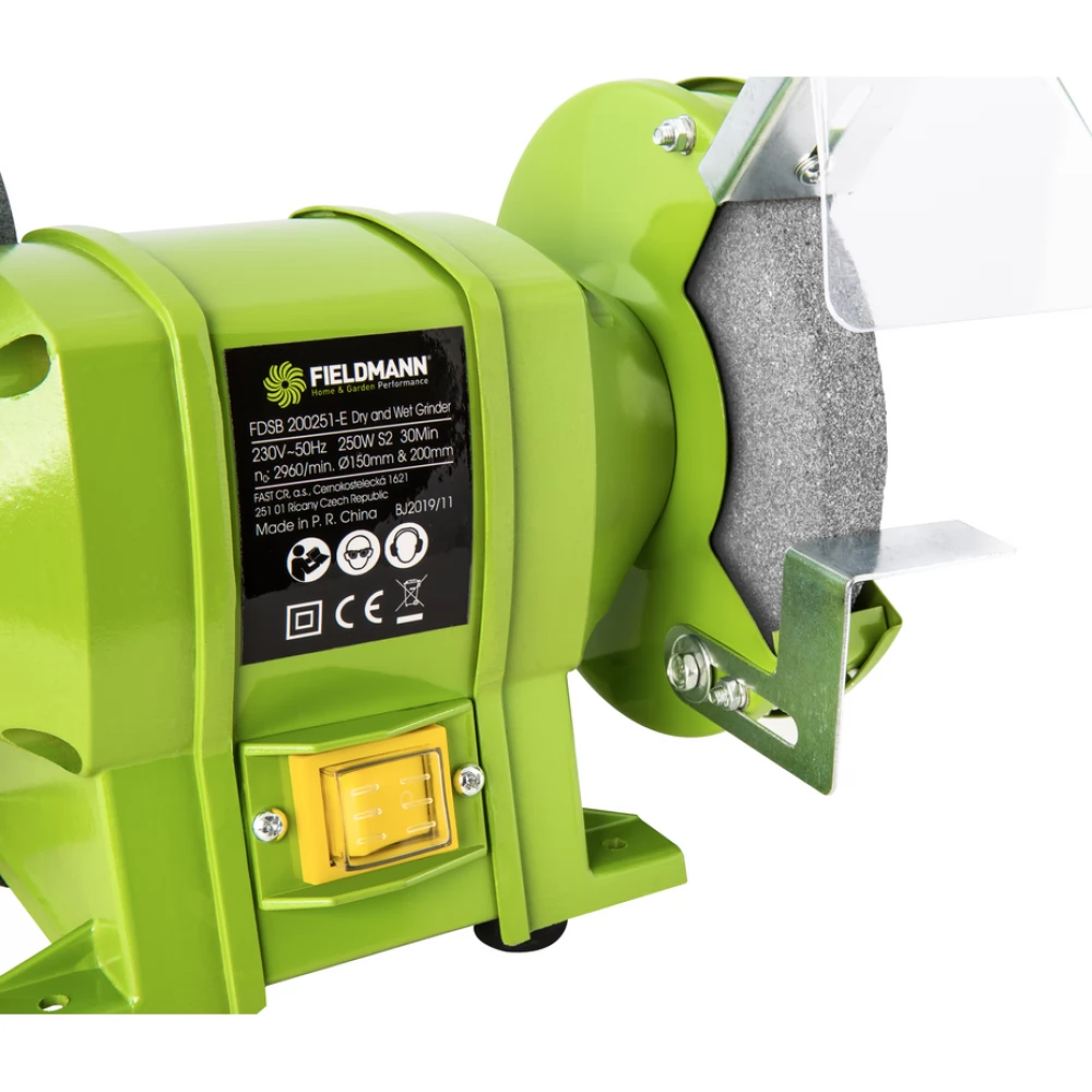 Fieldmann FDSB 200251-E brusilica s dva diska ima visoko precizan, robustan dizajn s grubim i finim brusnim diskovima. Gumena podloga osigurava stabilnu upotrebu, a podesivi štitnik od iskrenja siguran rad. Brzina u praznom hodu je 2960 o/min. Aluminijsko postolje, poduprto fiksiranjem na radnu ploču stola. S dva diska različitih veličina, što omogućuje i mokro brušenje.