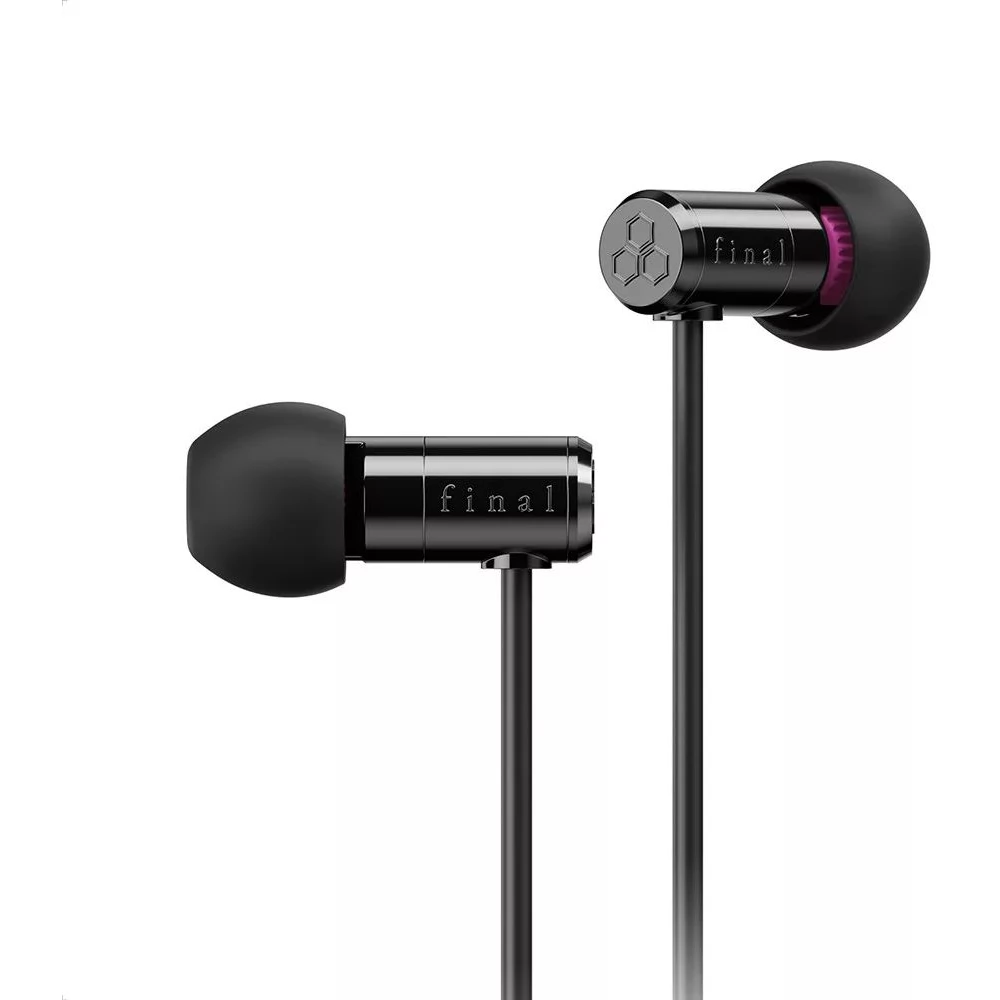 Final E500 su moderne in-ear slušalice s dinamičkim drajverom promjera 6,4 mm, polimerskim kućištem i robusnim, debelim i fleksibilnim crnim OFC kabelom. Tijekom razvoja E500 slušalica, finalni inženjeri stavili su poseban naglasak na surround zvuk, tako da je prirodan i uravnotežen zvuk prisutan ne samo za većinu glazbe, već i za ASMR i igre. Paket također uključuje pet različitih veličina silikonskih nastavaka za uši.