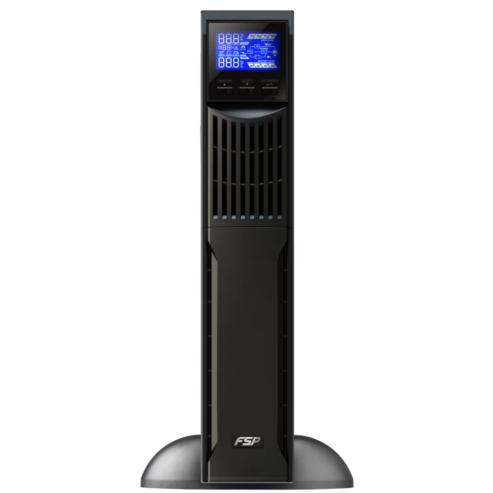 Serija FSP Champ Rack je verzija online UPS-a s dvostrukom pretvorbom visoke gustoće s faktorom izlazne snage od 0,9. Ima mali stalak i mikroprocesorski kontroler. Uključuje i USB i RS-232 komunikacijske priključke, a ima i ugrađenu pametnu utičnicu za podršku dodatnim adapterima, pretvaračima protokola i povezanim karticama.