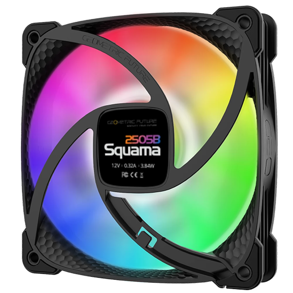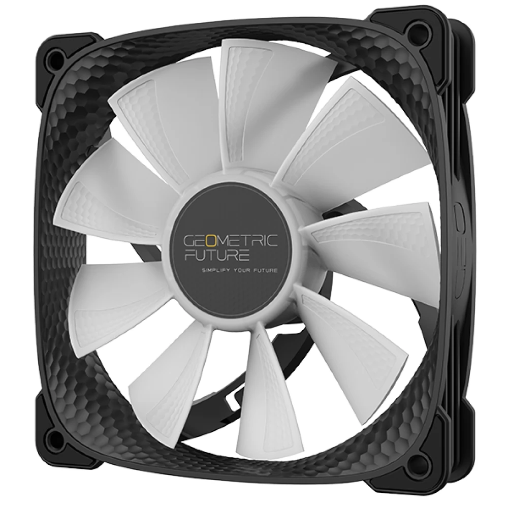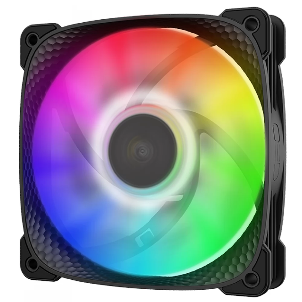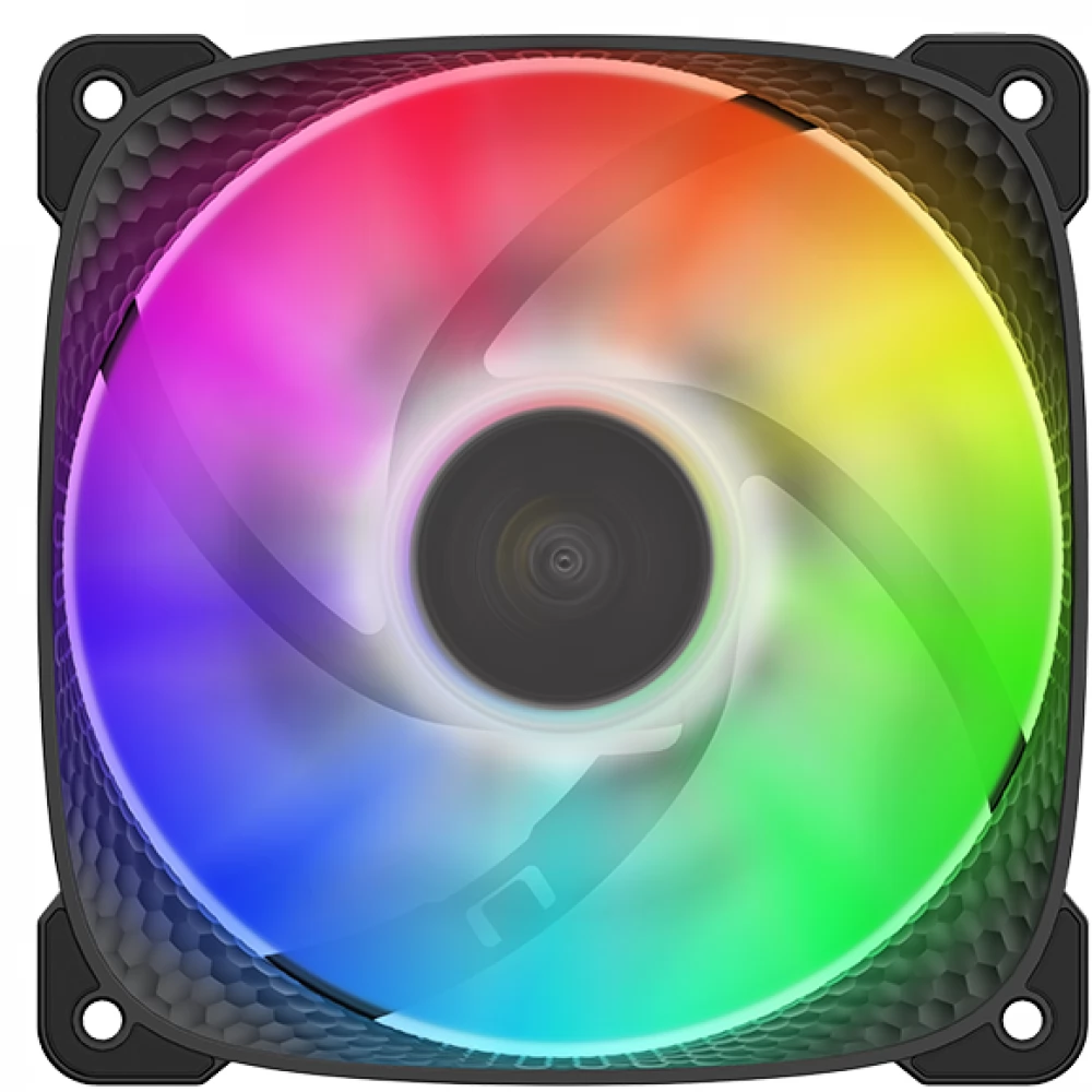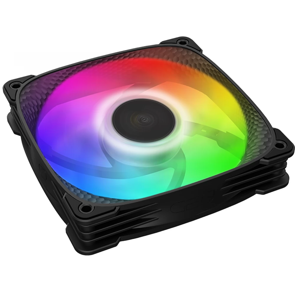 Ventilator za hlađenje kućišta debljine 25 mm debljine 120 mm s kontroliranim ARGB osvjetljenjem, PWM kontrolom brzine i antivibracijskim ručkama. Još jedna posebnost je da površina lopatica i okvir ventilatora ima poseban peterokutni uzorak, što povećava učinkovitost hladnjaka.