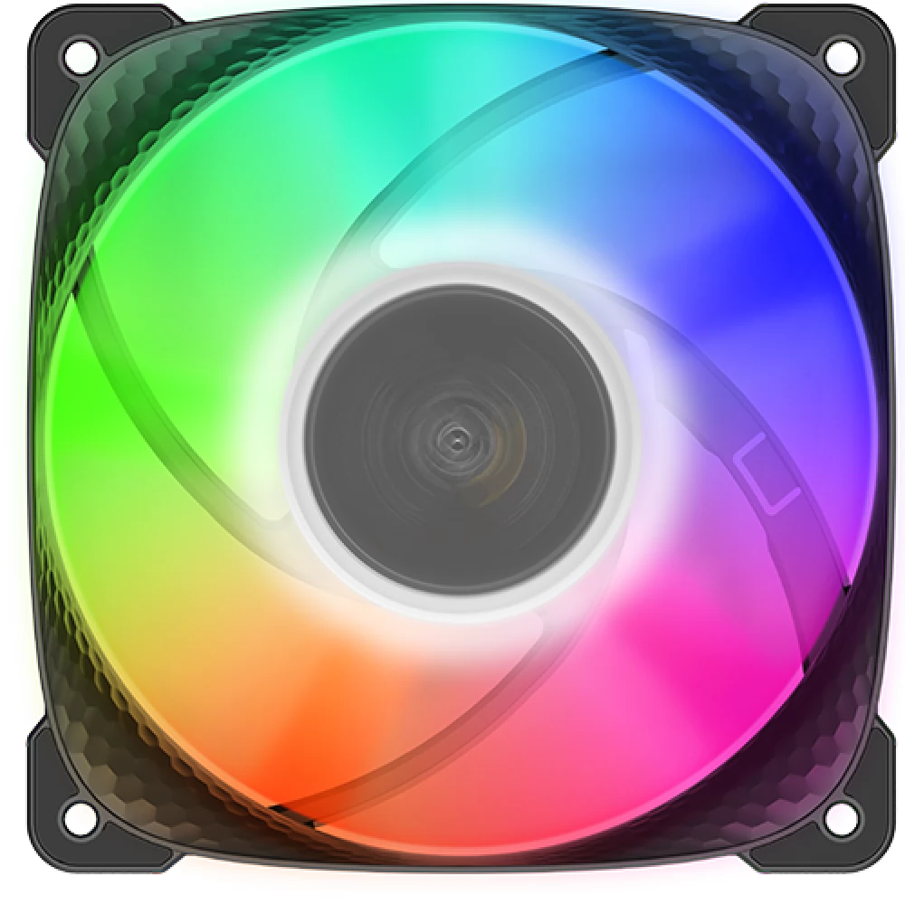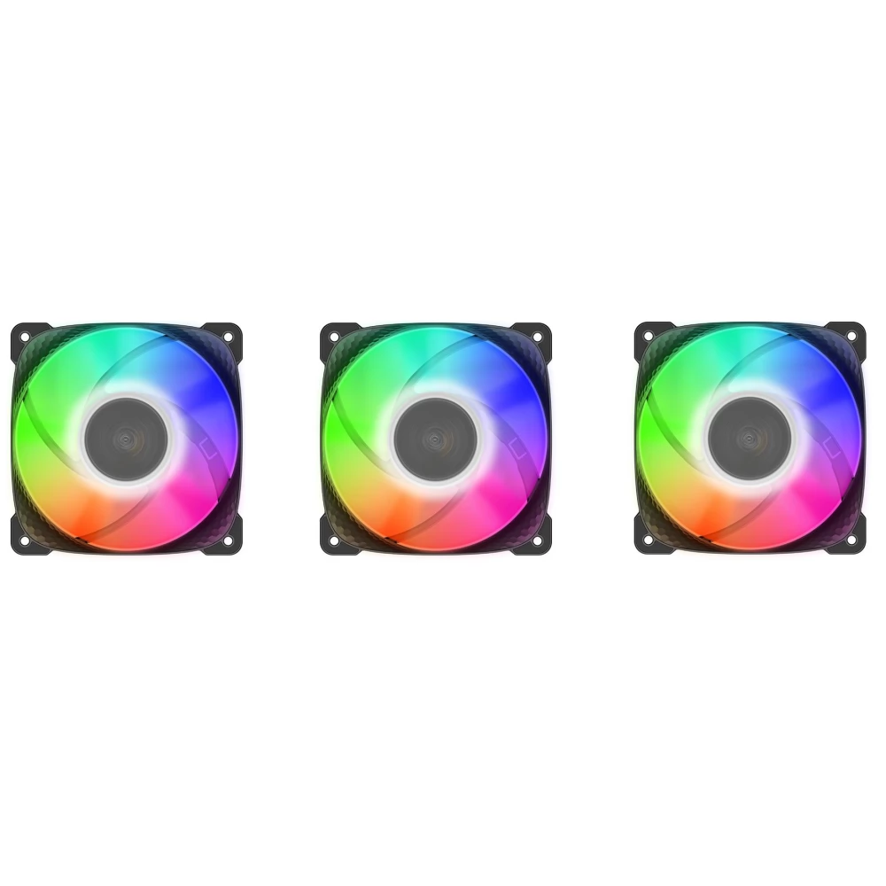 3 ventilatora za hlađenje kućišta debljine 38 mm debljine 120 mm mogu se kontrolirati ARGB osvjetljenjem, PWM kontrolom brzine i antivibracijskim ručkama. Još jedna posebnost je da površina lopatica i okvir ventilatora ima poseban peterokutni uzorak, što povećava učinkovitost hladnjaka.