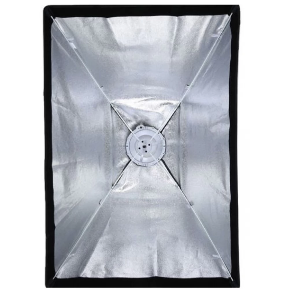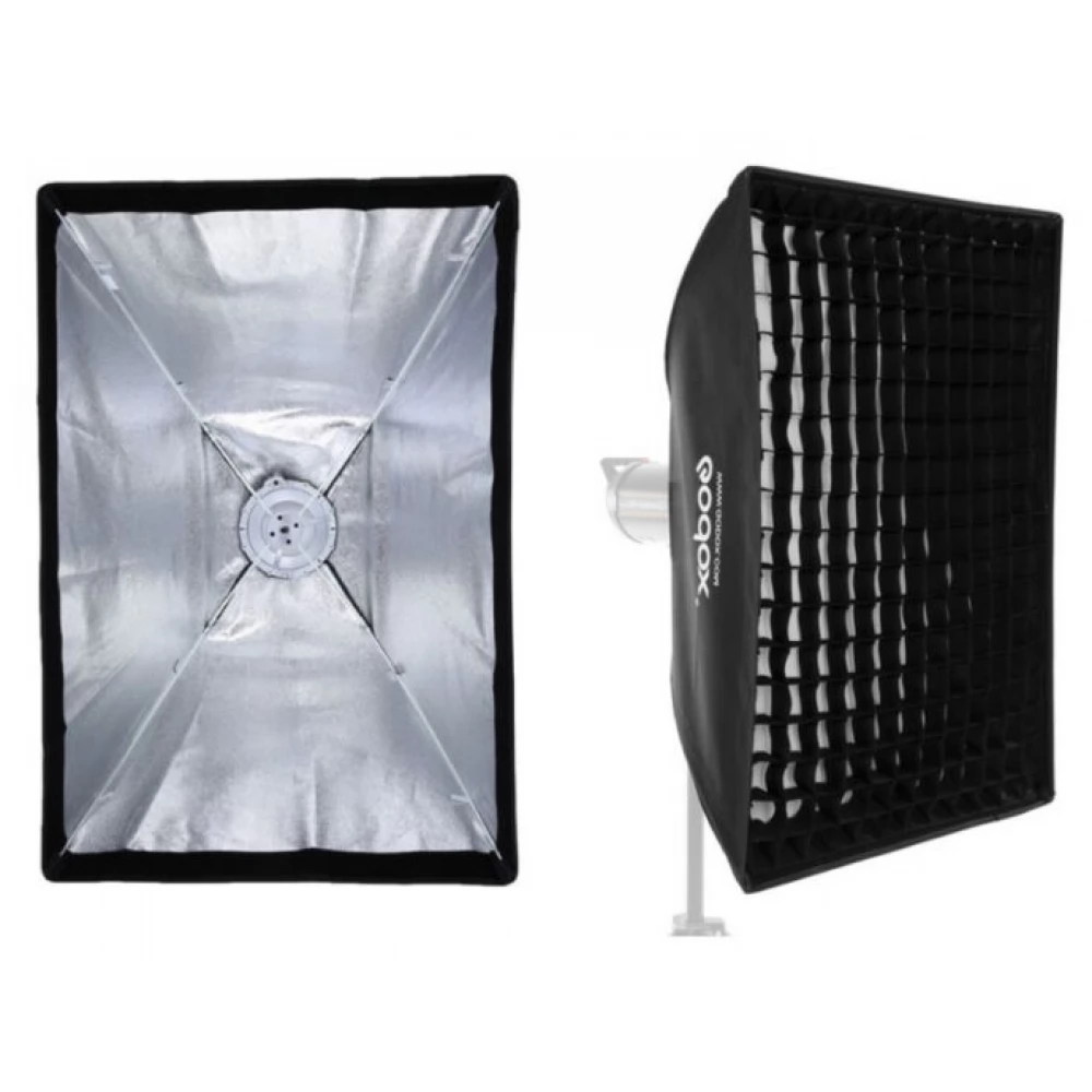 Svaki fotograf koji radi s bljeskalicom treba softbox. Ovo je kvadratna kutija 60x90. Zbog svog oblika može se bljeskati ne samo bulb bljeskalicom, već i sistemskom bljeskalicom s četvrtastom glavom. U slučaju okruglih kutija, sistemska bljeskalica neće savršeno bljesnuti softbox jer sistemska bljeskalica gura svjetlo naprijed, dizajn glave prilagođava se obliku pravokutnika senzora. Poželjno je koristiti četvrtastu kutiju za četvrtastu glavu sistemskih bljeskalica. Naravno, savršeno se može koristiti i sa žaruljom. Može biti izvrstan izbor za portrete, fotografije proizvoda, pojašnjenje i rasvjetu. Kutija također uključuje saćastu rešetku koja čini putanju svjetlosti usmjerenijom. Kutija se može otvoriti kao kišobran, lako se prenosi i može se staviti u rad za nekoliko sekundi.