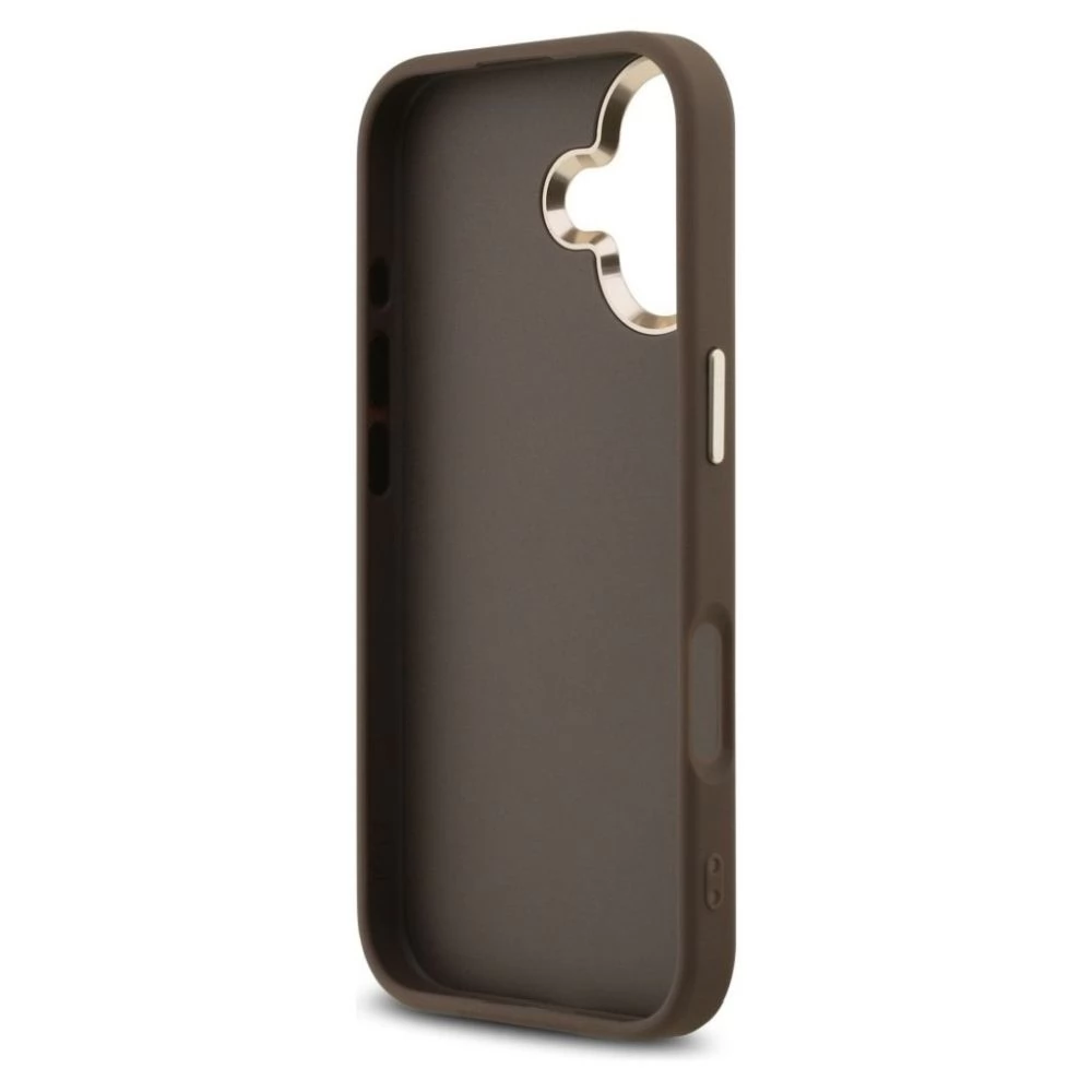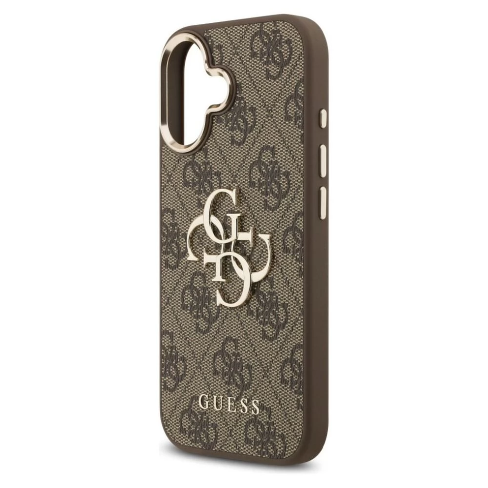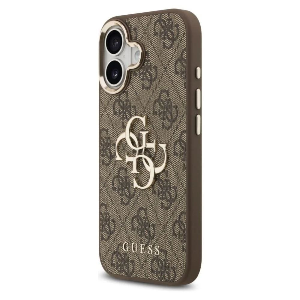 GUESS iPhone 17 GUESS 4G BIG CLASSIC LOGO silikon zaštitnik za telefon ütésállóság, Koža efekt hátlap, BARNA/ARANY