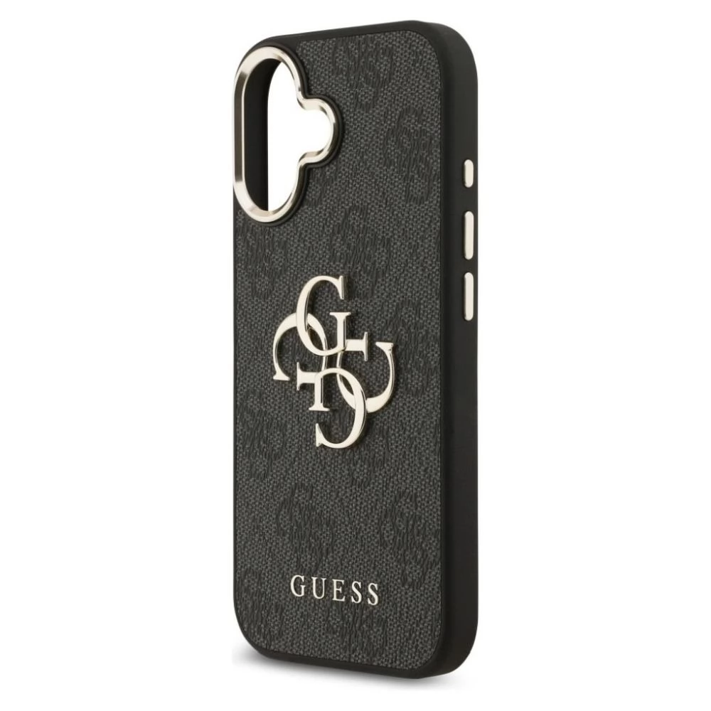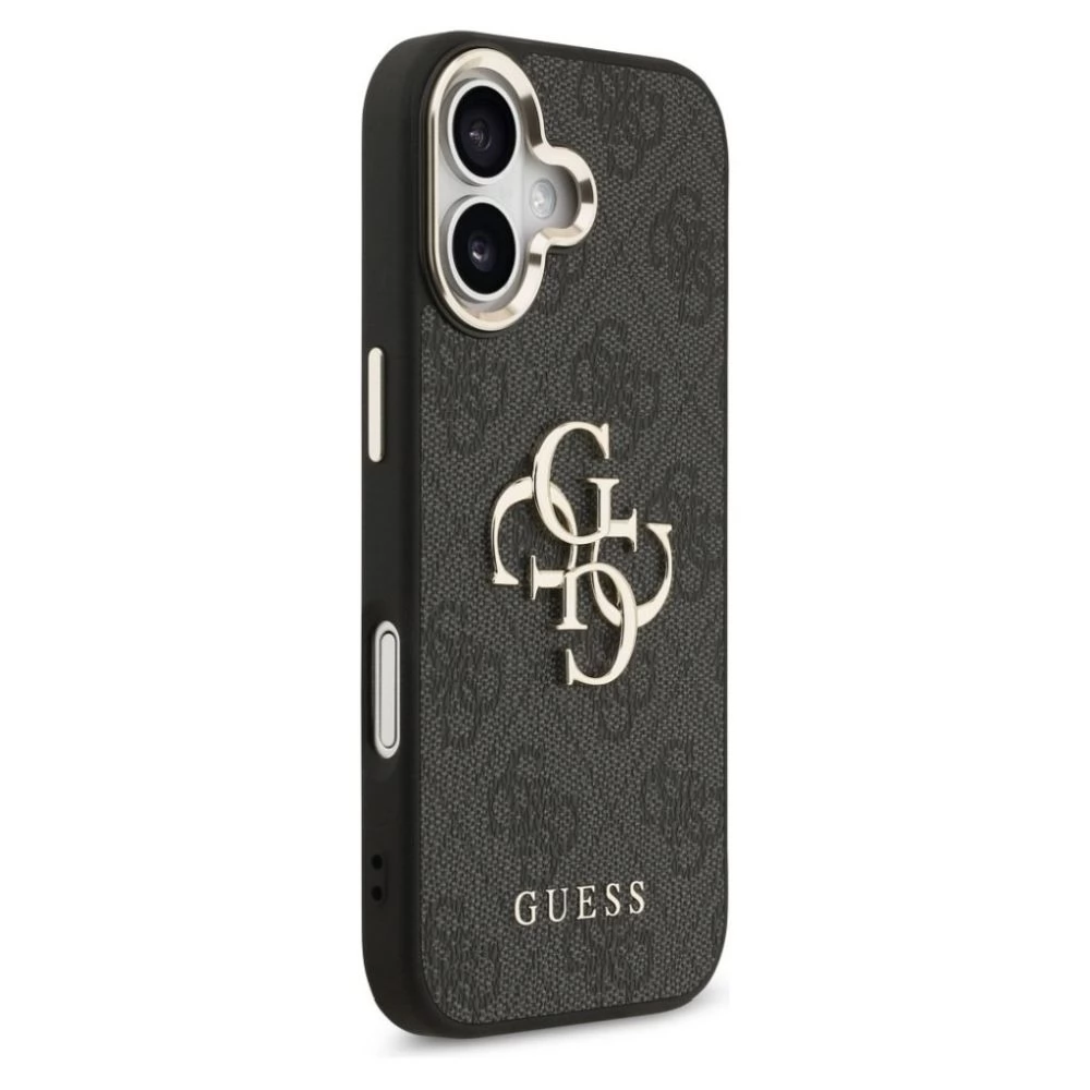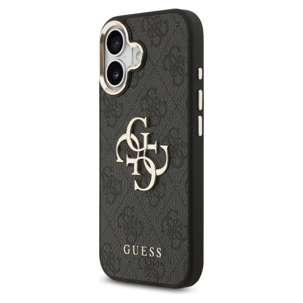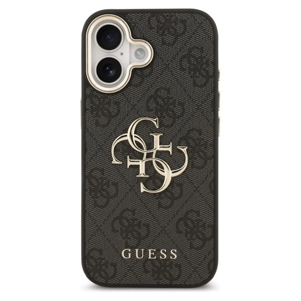 GUESS iPhone 17 GUESS 4G BIG CLASSIC LOGO silikon zaštitnik za telefon ütésállóság, Koža efekt hátlap, FEKETE/ARANY