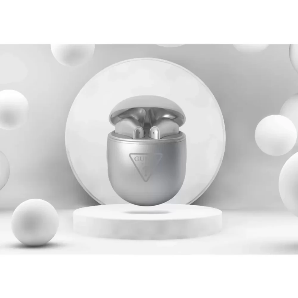 Guess True Wireless Classic bežične slušalice ističu se izvrsnim zvukom, ergonomskim oblikom i kontrolama na dodir. Elegantan par s dobrim zvukom, ovo su nove Guess slušalice. Fino podešen zvuk za kristalno jasan prijenos glazbe i izgovorene riječi. Zahvaljujući ugrađenom mikrofonu, također možete udobno telefonirati sa slušalicama. Slušalice su opremljene kontrolama na dodir. Jednostavnim dodirom možete povećati ili smanjiti glasnoću, pomicati pjesmu naprijed i natrag ili odgovoriti ili prekinuti poziv. Priložena je i praktična kutija za spremanje i transport slušalica koja prvenstveno služi za punjenje slušalica. Stavite slušalice u torbicu i punjenje će započeti automatski. Slušalice možete puniti najmanje 5 puta iz kućišta, što vam daje do 30 sati trajanja baterije s jednim punjenjem. Slušalice također imaju IPX5 otpornost, što znači da su otporne na znoj i kišu.
