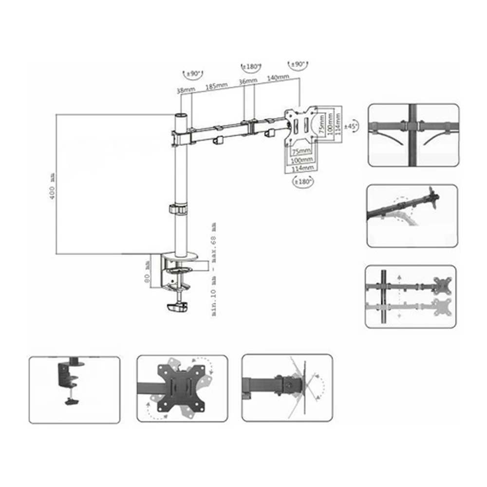 Nosač LCD, LED monitora s ručicom za zaslone od 13-27" koji se može montirati na ploču stola.