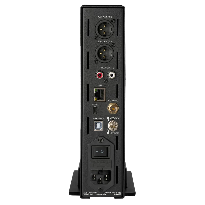 Uređaj sadrži simetrične XLR ulaze i izlaze, RCA konektore i digitalne USB-B i USB-C priključke kako bi se lako povezali različiti izvori zvuka. EF500 također podržava mrežno streaming glazbe putem LAN konektora, omogućujući vam da zvučite strujanje s NAS poslužitelja ili drugih uređaja.