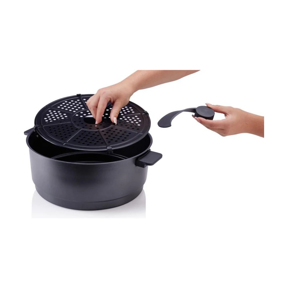 Uređaj ima raspon temperature od 80-200°C i tajmer od 60 minuta. Uz pomoć 10 automatskih programa možete jednostavno pripremati različita jela. Kontrola na dodir s LED zaslonom i sichtfenster (prozirni prozor) omogućuju praćenje procesa kuhanja.