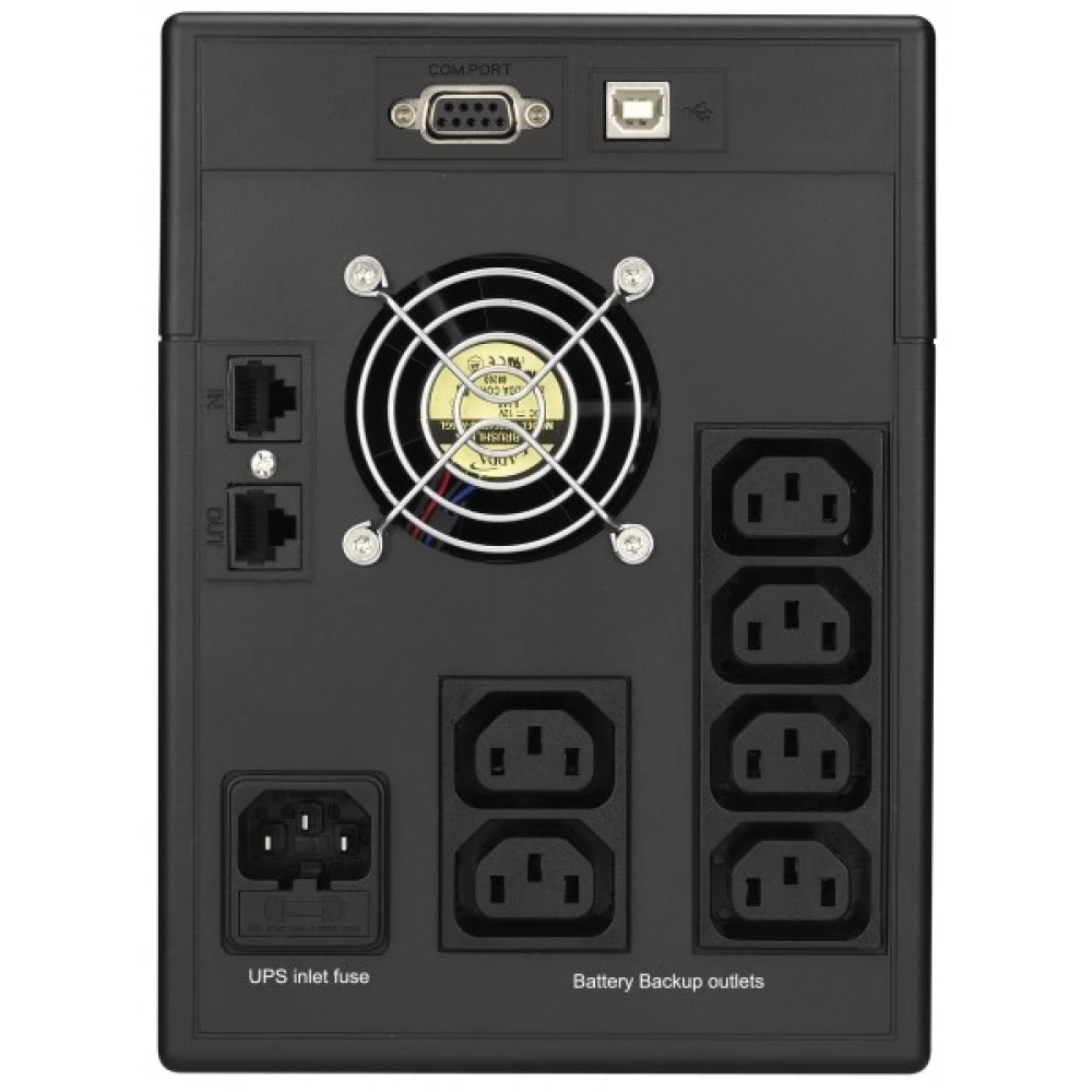 - LCD zaslon: AC način rada, način rada baterije, razina opterećenja, razina baterije, ulazni napon, izlazni napon, preopterećenje, greška i slaba baterija
