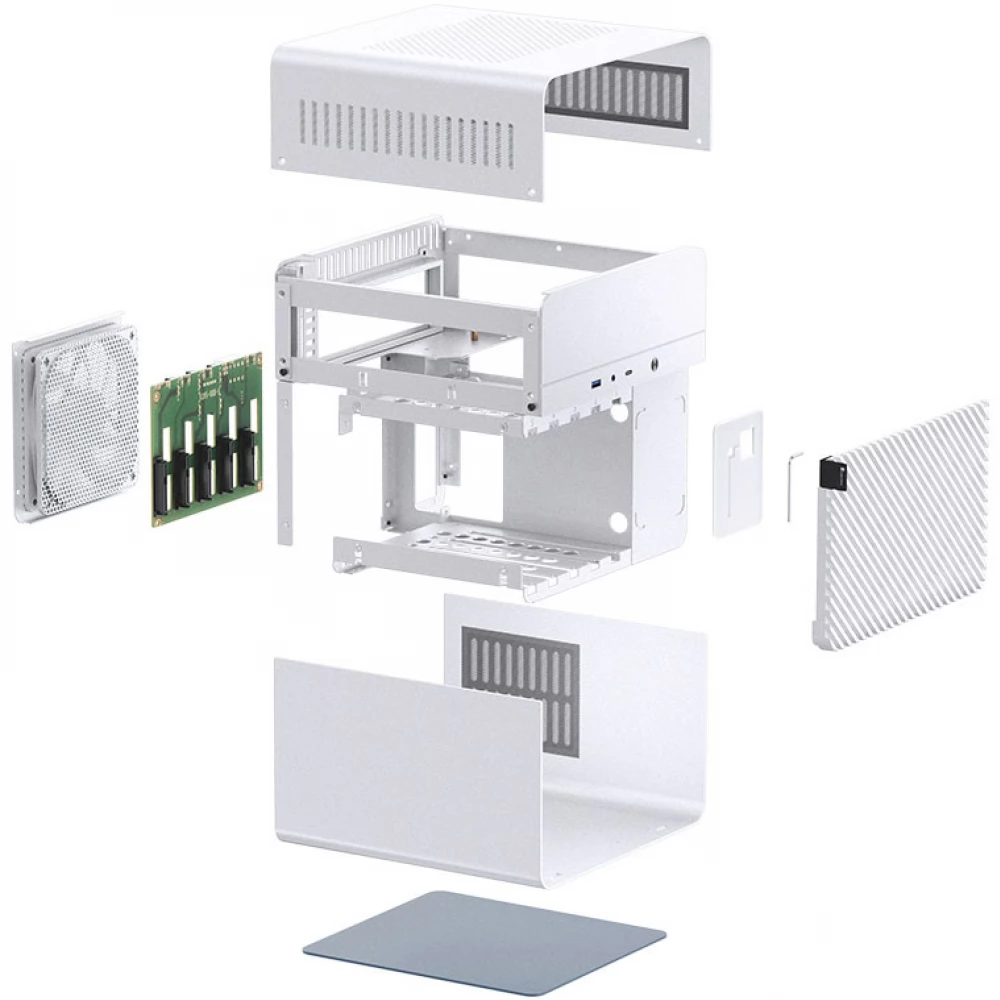 Kompaktno kućište za računalo za pohranu u oblaku ili sustave kućnog ureda. Jonsbo N2 je malo, ali dobro rješenje za ciljne sustave. Može primiti jedan 2,5-inčni SSD i pet 3,5-inčnih HDD-ova. Za pet HDD pogona već je instalirana SATA/SAS kartica koja se može mijenjati bez rada. Istodobno je svestran i štedi prostor jer se može položiti ili postaviti uspravno.
