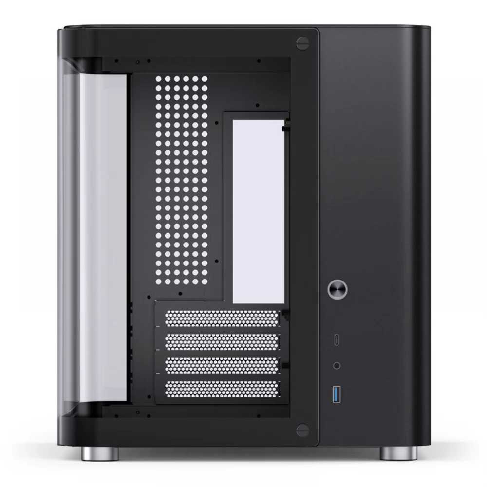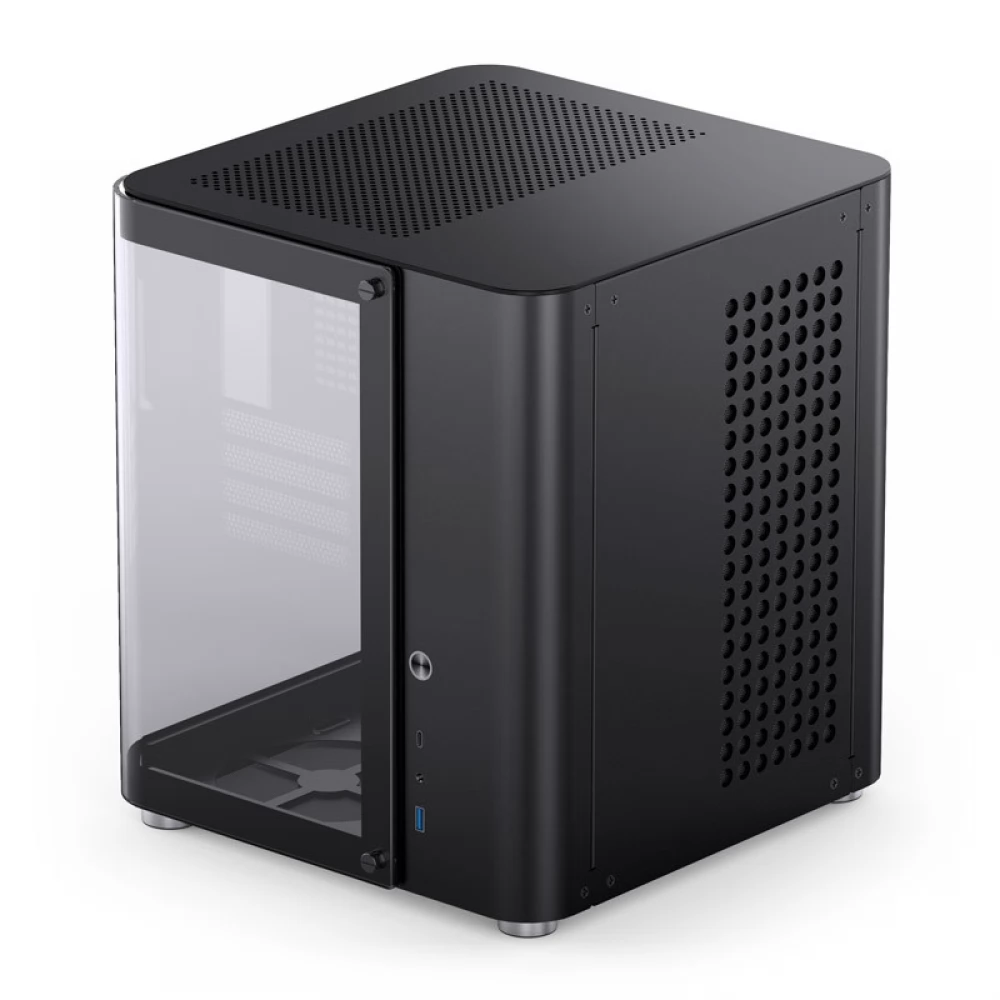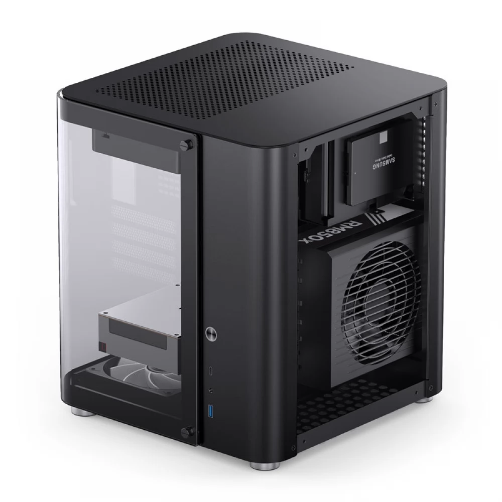 Izvana Jonsbo TK-1 2.0 Micro-ATX kućište impresionira elegantnim i modernim kockastim dizajnom, zaobljenim rubovima i besprijekornom izradom. Ploča od kaljenog stakla u obliku slova U proteže se s prednje strane na lijevu stranu i čak pokriva mali dio stražnje strane. Zaobljeni oblik daje jedinstveni dizajn kućištu TK-1 2.0 Micro-ATX i ističe njegov snažan hardver.