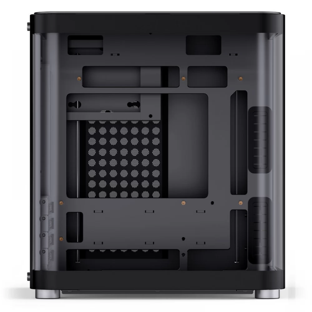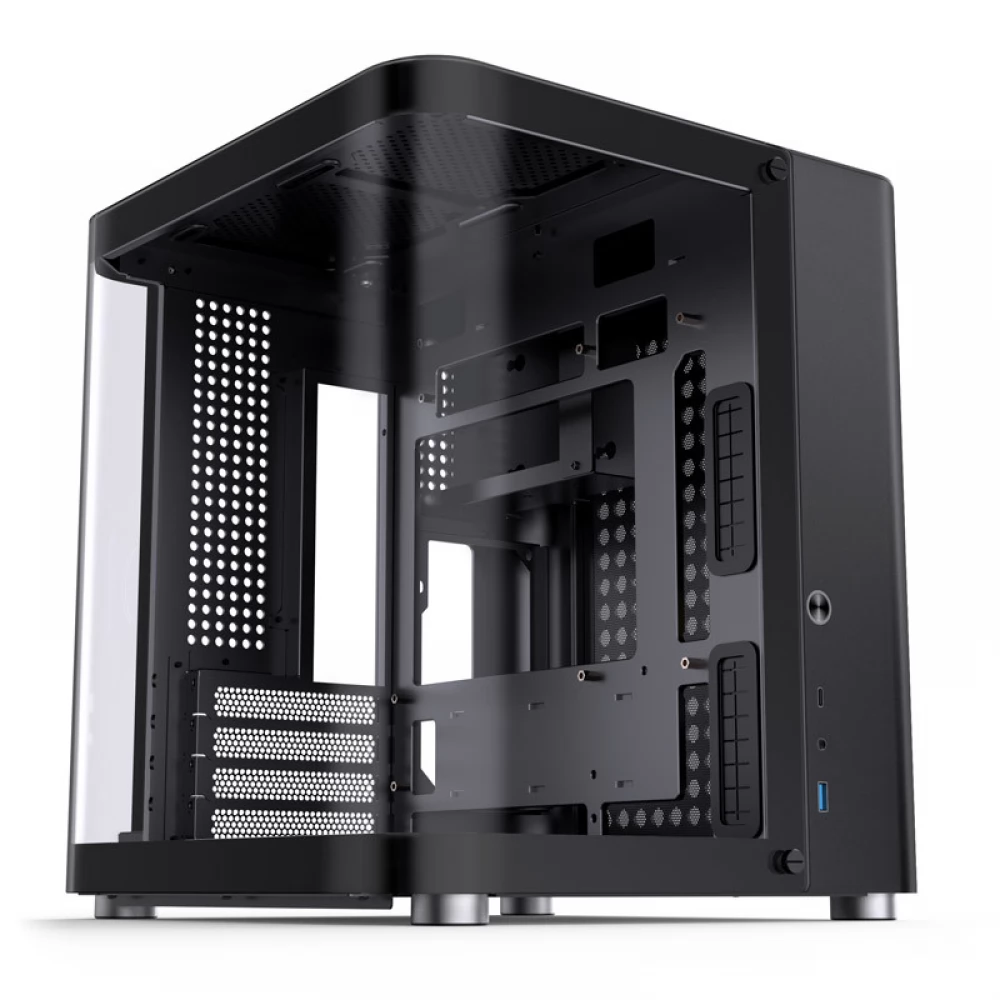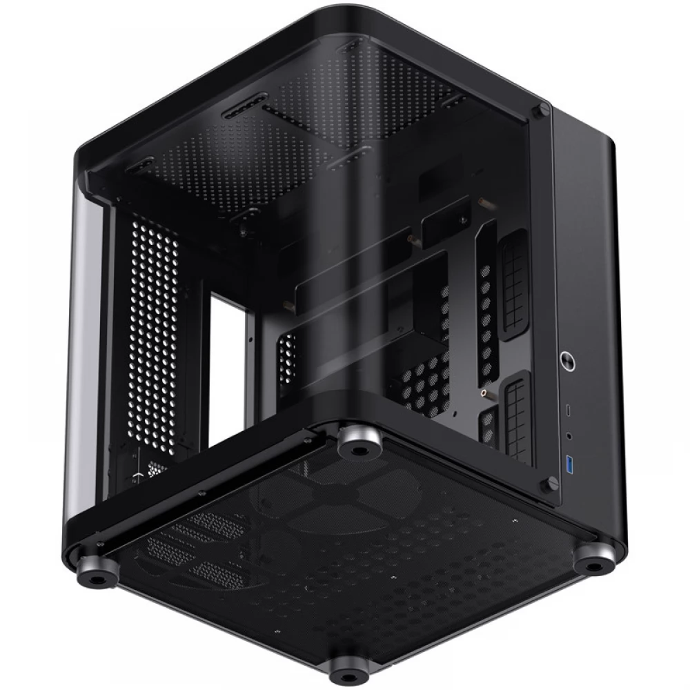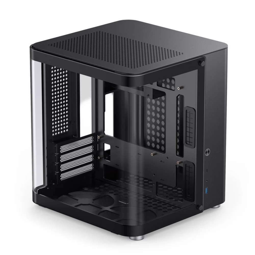 Izvana Jonsbo TK-1 2.0 Micro-ATX kućište impresionira elegantnim i modernim kockastim dizajnom, zaobljenim rubovima i besprijekornom izradom. Ploča od kaljenog stakla u obliku slova U proteže se s prednje strane na lijevu stranu i čak pokriva mali dio stražnje strane. Zaobljeni oblik daje jedinstveni dizajn kućištu TK-1 2.0 Micro-ATX i ističe njegov snažan hardver.