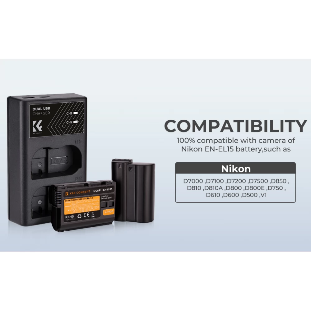 K-F CONCEPT MH-25 dupla punjač 2kom EN-EL15 za bateriju