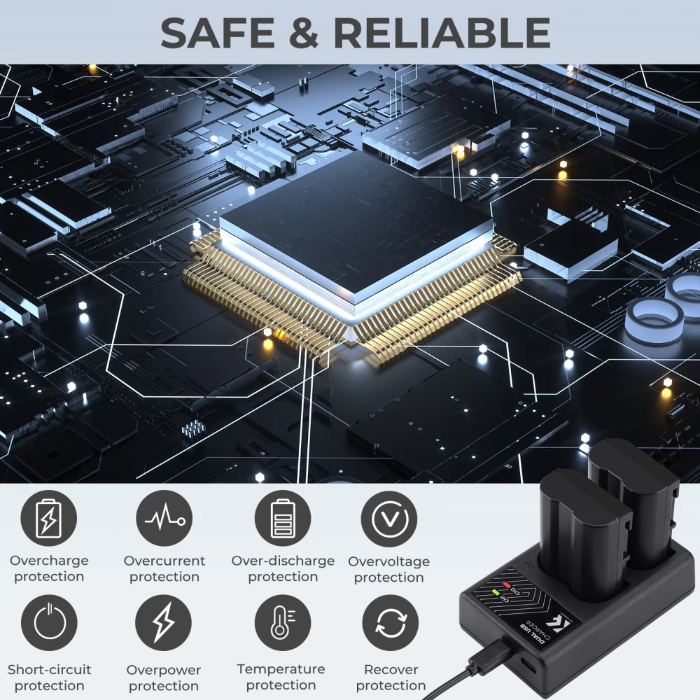 Visokokvalitetna prijenosna jedinica za dvostruko punjenje za istovremeno punjenje 2 EN-EL15 baterije.