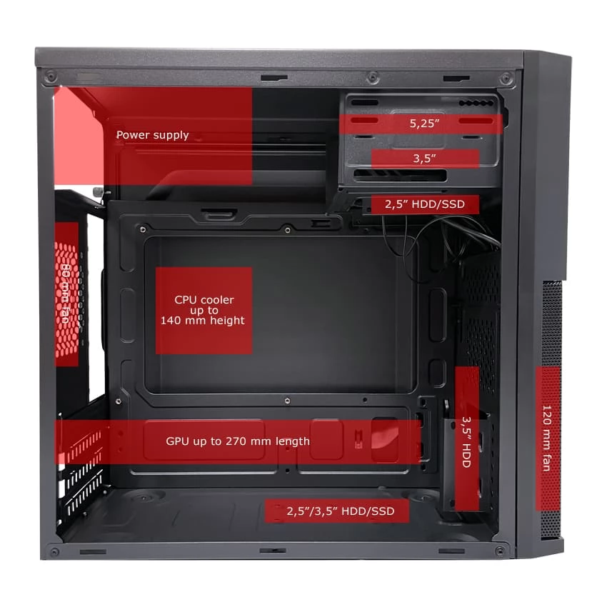 Kuća M-ATX 2004MB-V3 nudi svestrane mogućnosti konfiguracije za kompaktnu konstrukciju računala. Zahvaljujući sofisticiranom dizajnu, može se instalirati do četiri tvrda diska i tri kućna obožavatelja. Napajanje je na vrhu, ostavljajući više prostora za komponente na donjem dijelu. Bočni otvori pružaju bolji protok zraka i učinkovito hlađenje. Savršen izbor za sustave visokih performansi i prostora.
