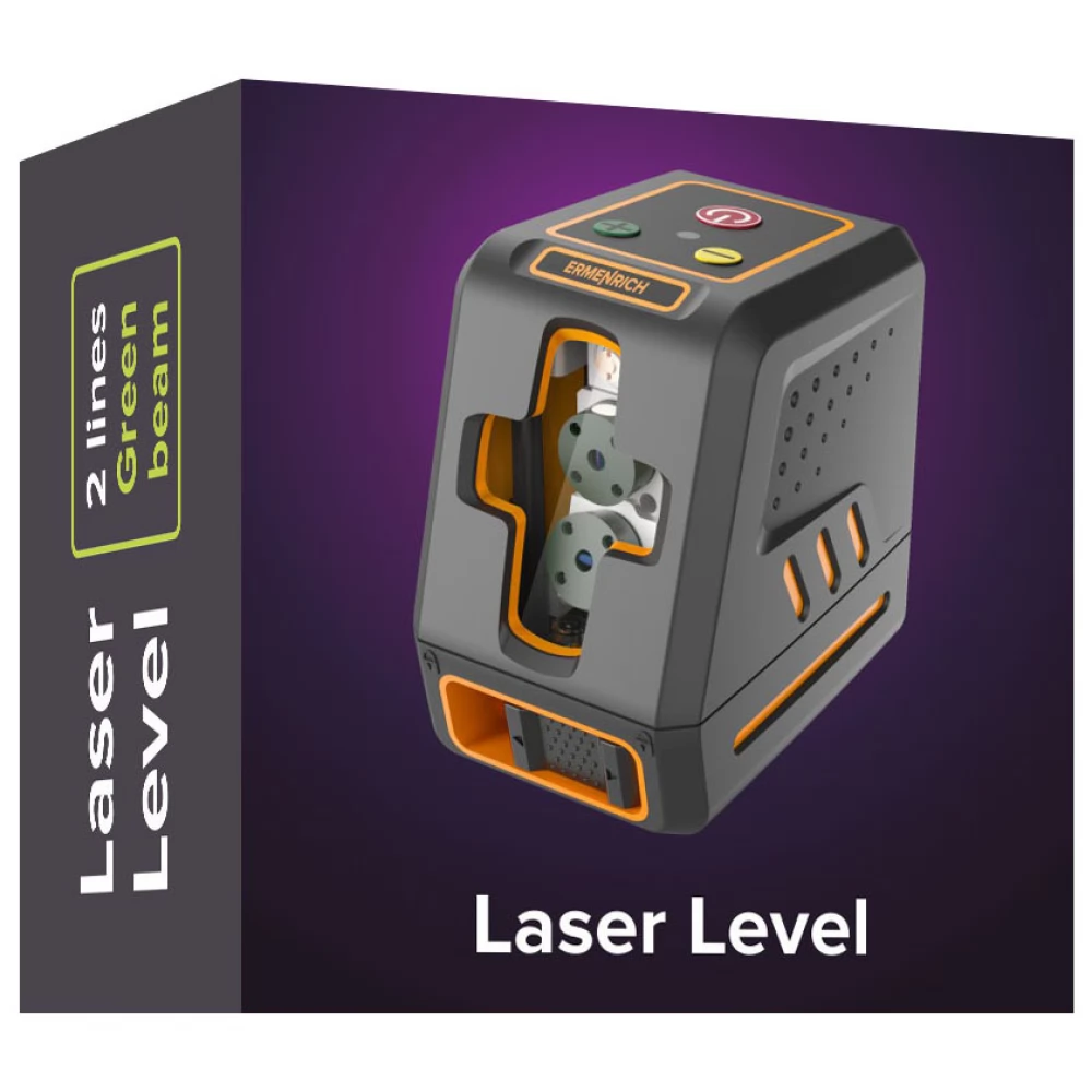 Ermenrich LT40 je laserska libela s dvije linije koje se sijeku i zelenom laserskom diodom. Alat je idealan za građevinske, unutarnje i renovacijske radove. Raspon projekcije vodoravne i okomite ravnine je 130°. Radi sa standardnim baterijama i može se odabrati 10 razina svjetline. Baterije pružaju 10 sati rada čak i pri maksimalnoj svjetlini, tako da ne morate mijenjati baterije tijekom smjene.