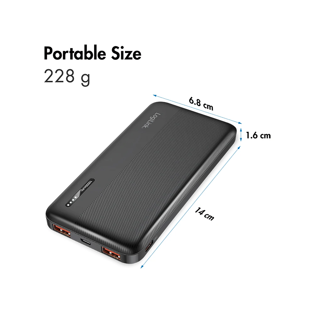 LOGILINK Power Bank LiPo 2xUSB 1xUSB-C 10000mAh 20W crno